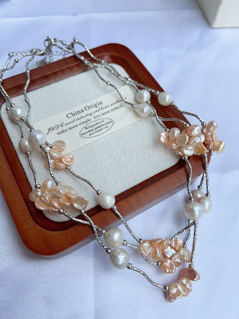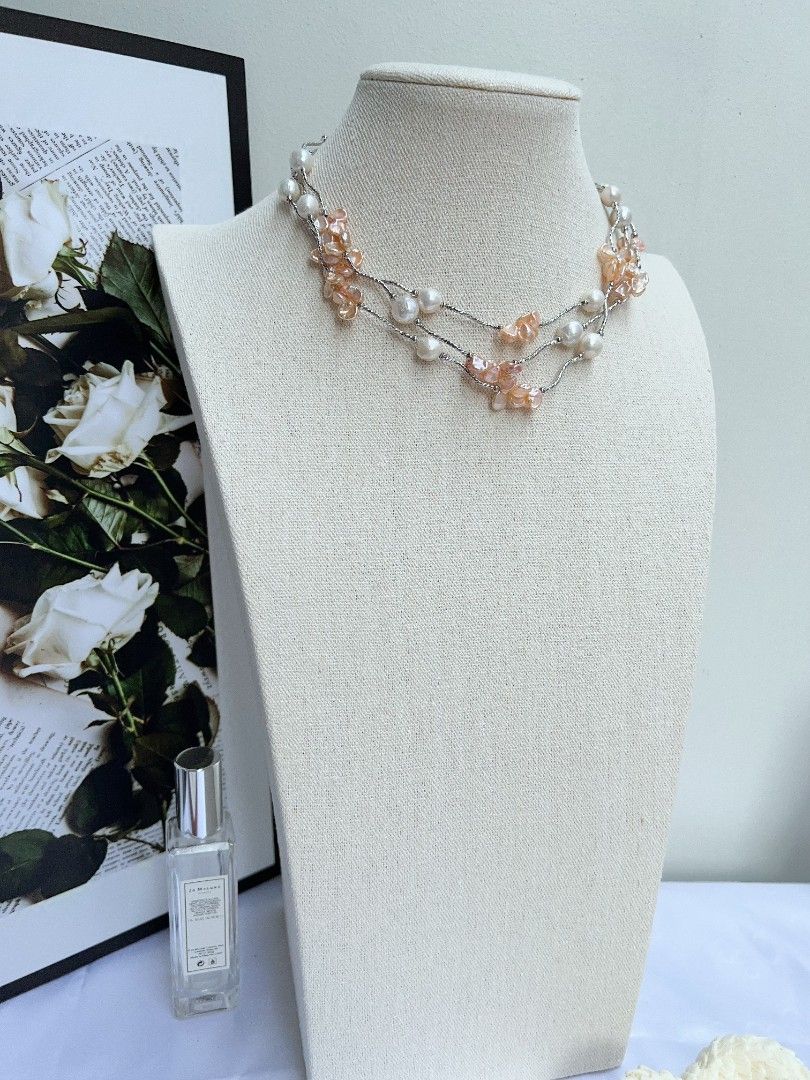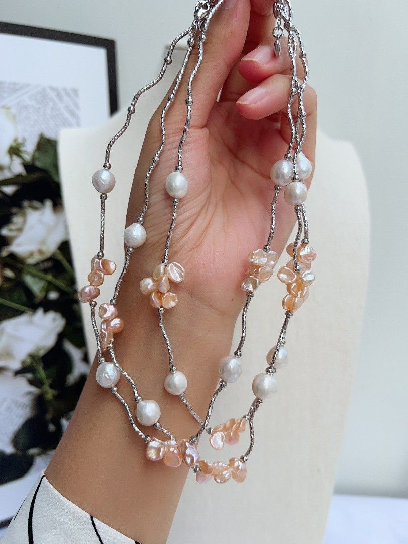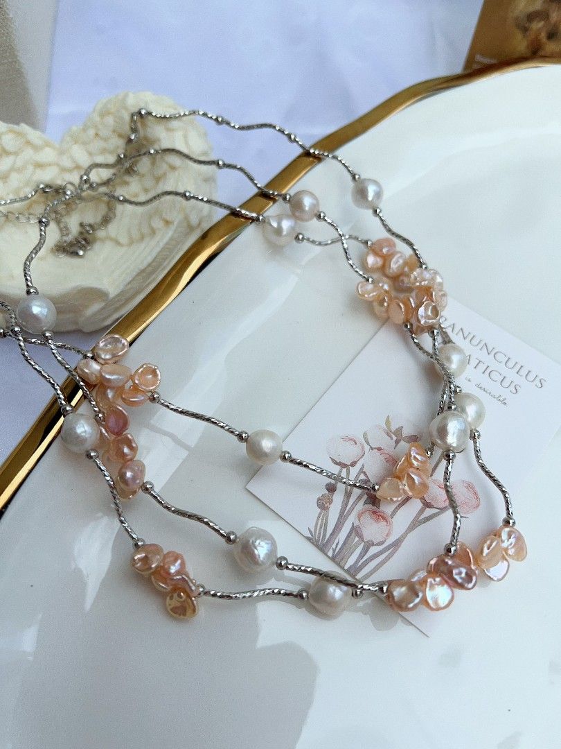 #PN1155 Freshwater Pearl Necklace| 7mm Orange 🍊 Golden Clean Petals| 9-10mm Baroque Pearl| Unique Design| Lustrous| Elegance Specialism