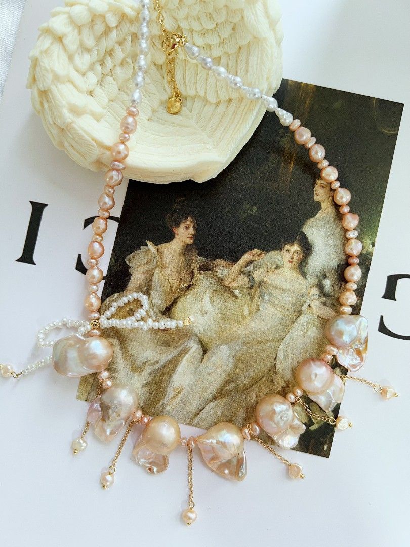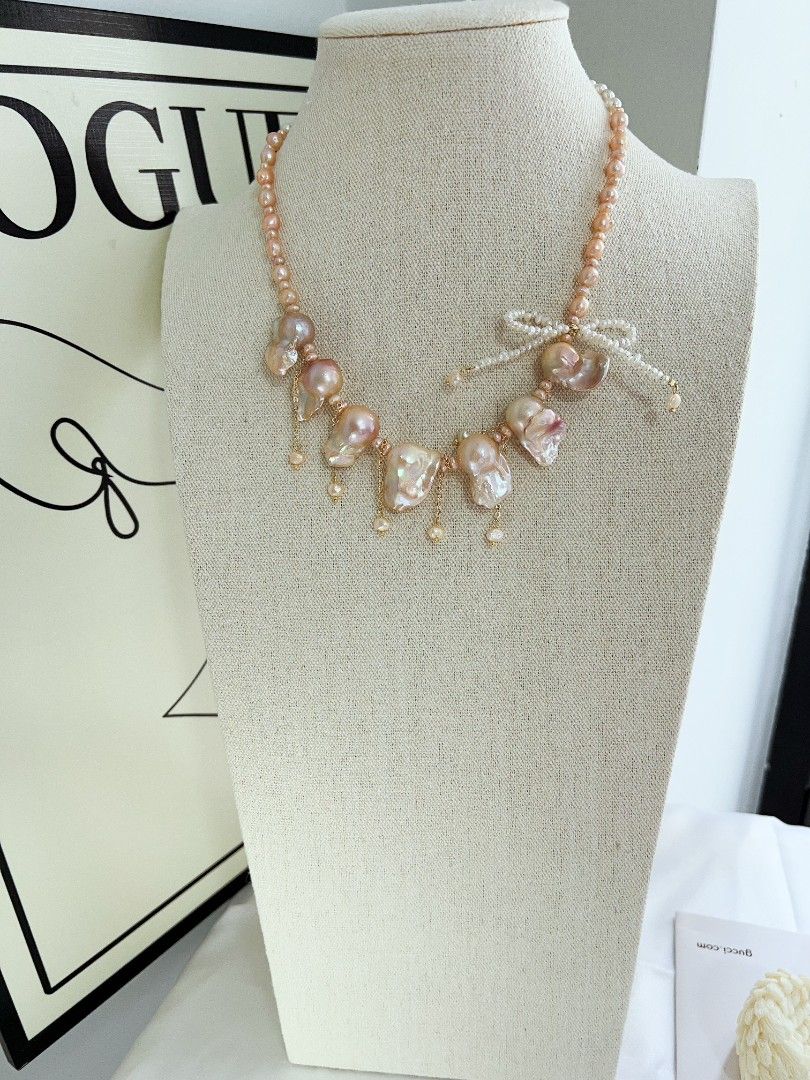 #PN1167 Freshwater Pearl Necklace| Golden Sunset 🌇| Fishtail Baroque Pearl| Lustrous| Dangling Pearl| Pearl Ribbon 🎀| Princess Vibe| Anniversary Gift 🎁