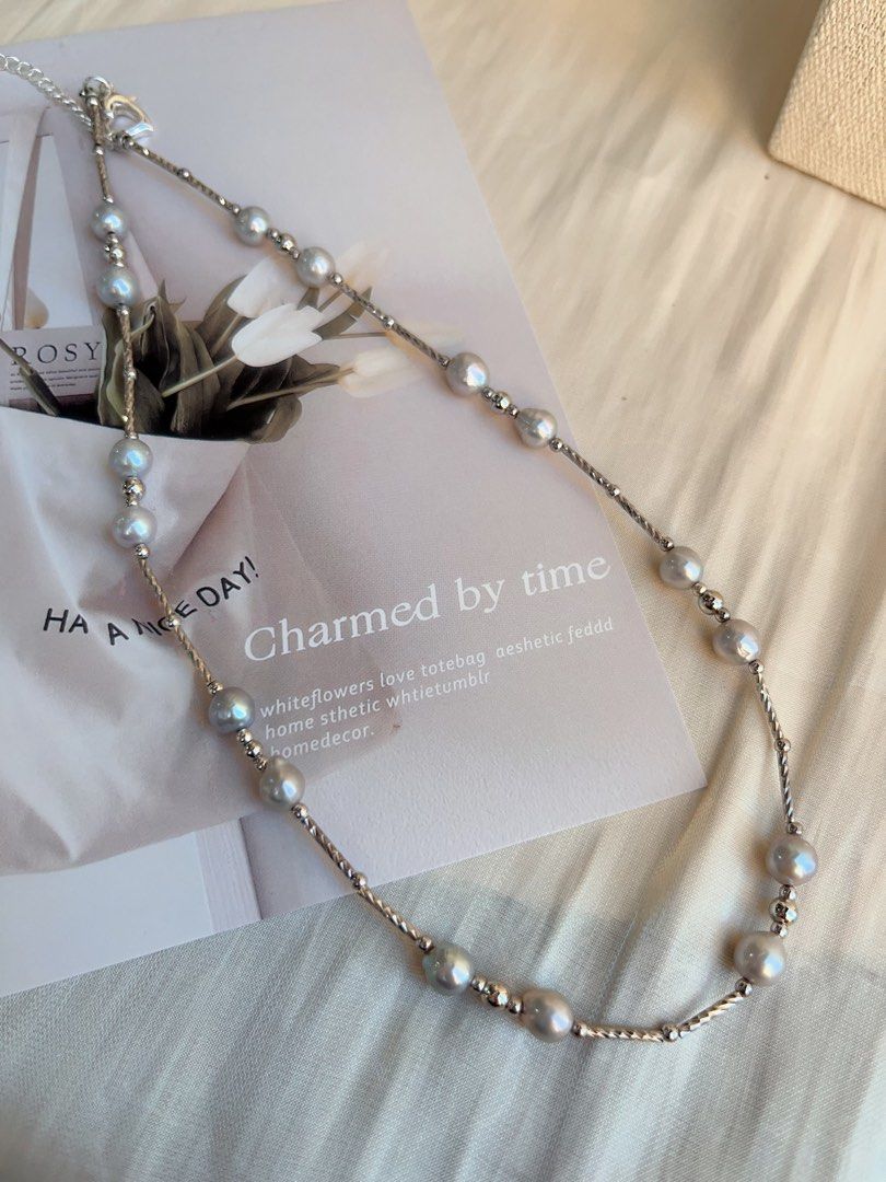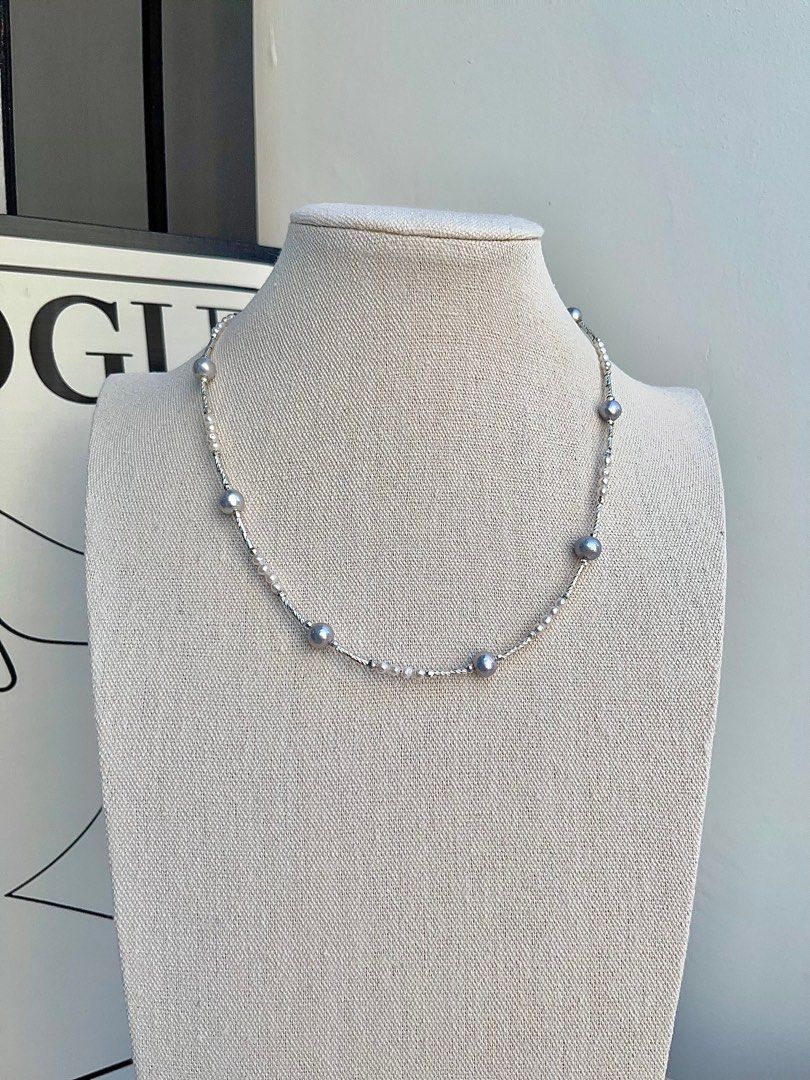 #PN694 Freshwater Pearl Necklace| Grey Electro-treated Colour | Minimalism with Style | Star-y Sky Design
