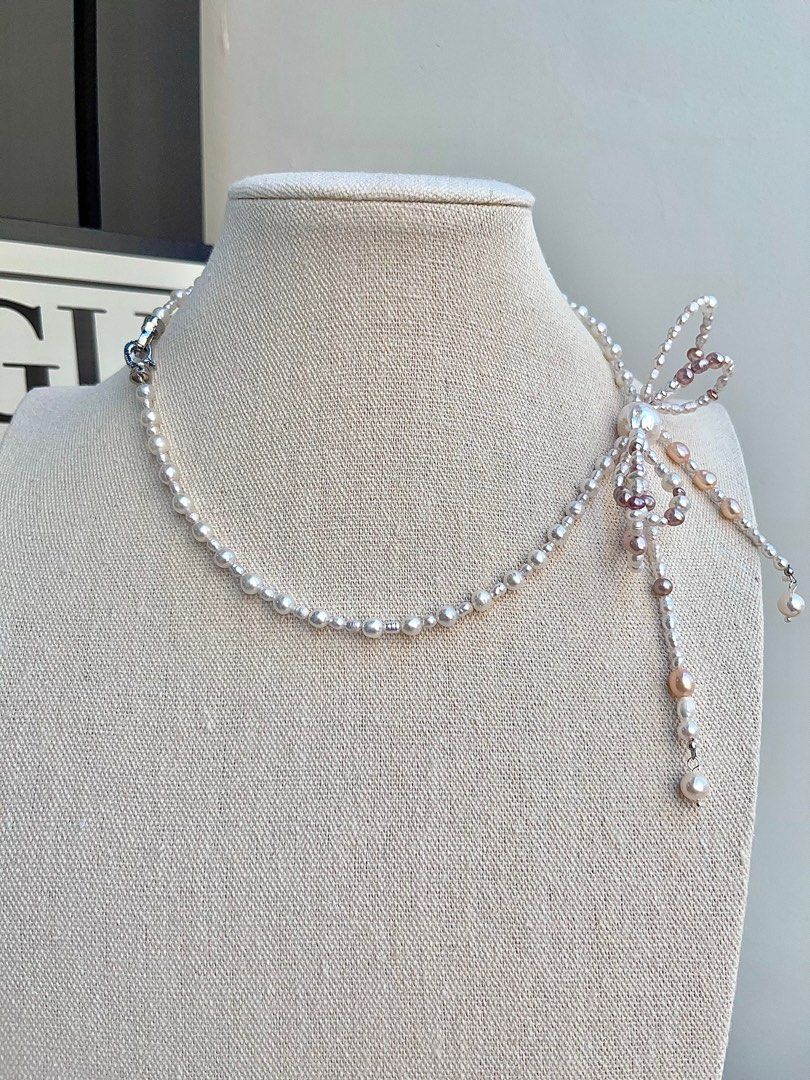 #PN696 Freshwater Pearl Necklace | Big Double Layer Pearl Bowknot| The Little Girl Inside