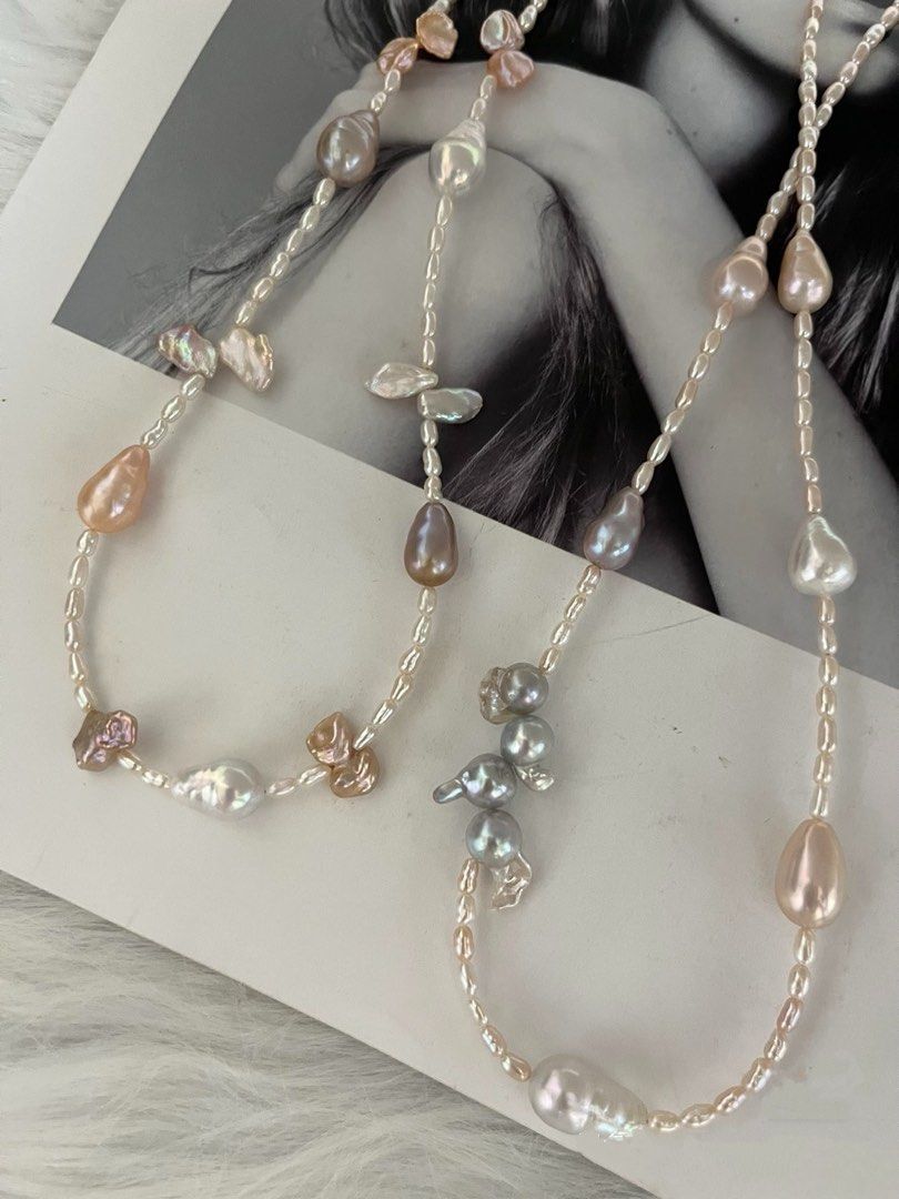 #PN772 Freshwater Pearl Necklace | Japan Madama Pearl | Lustrous Morandi Colour Water-drop Baroque | Rice Shaped| Petal Pearl | Worthy, Wild, Woman