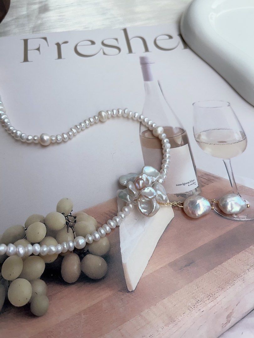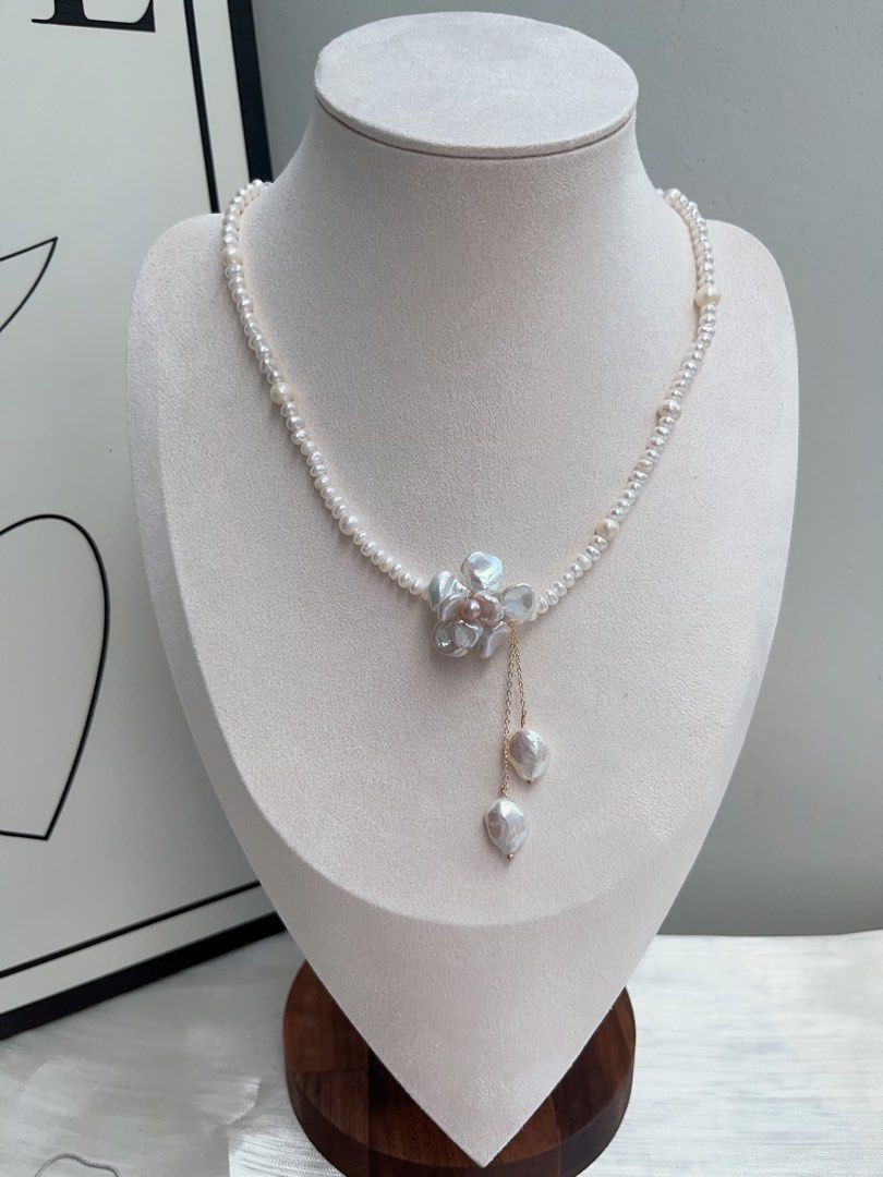 #PN901 Freshwater Pearl Necklace | Solver-blue Petal Flower| Lustrous | Dangling Baroque Petals| Wearing Flower 🌺 | Perfect for Wedding, Birthday Gift 🎁