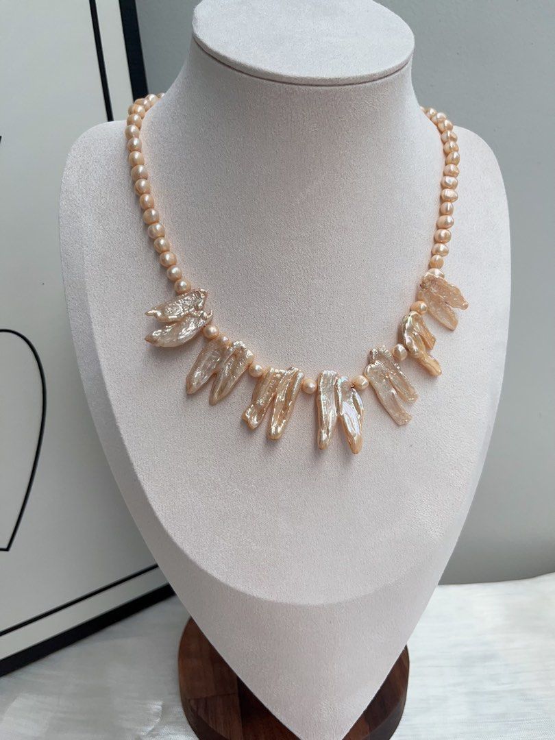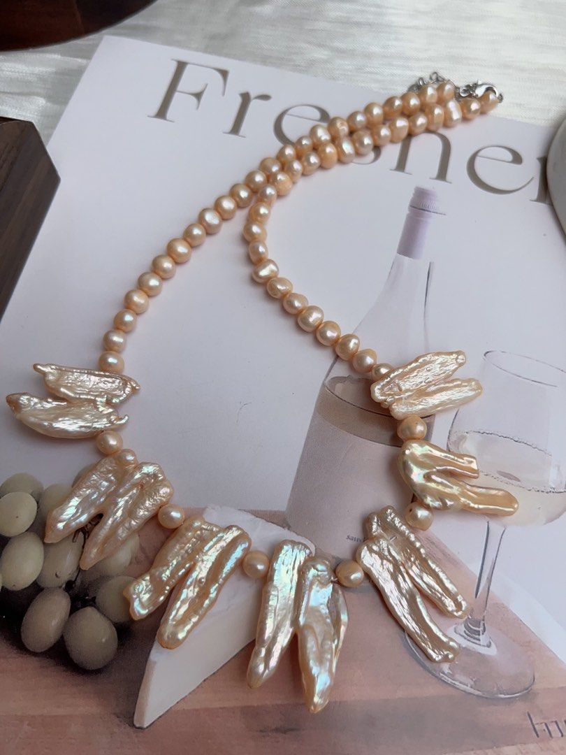 #PN902 Freshwater Pearl Necklace | Deep Champagne Orange 🍊 Colour Lustrous Lute Shape Baroque | Flower Design| 10*25mm Big Lute| Natural Flaws| Energy Station