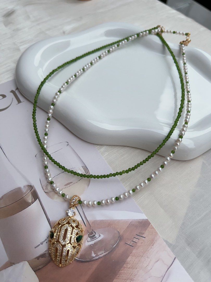 #PN912 Freshwater Pearl Necklace | 2 Pieces Set | Snake Brings Luck| Removable Pendant| 3-4mm Baby Pearl & Jade Beads| Dainty & Charismatic