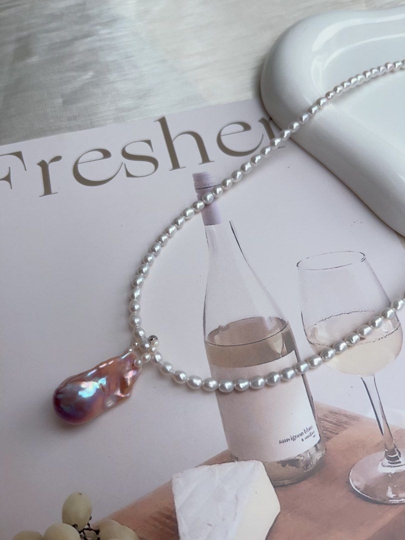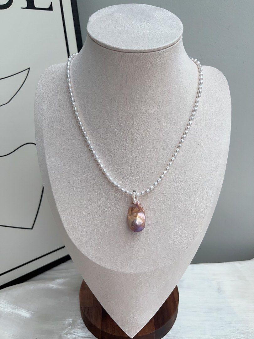 #PN919 Freshwater Pearl Necklace | Lustrous Baby Pearl | Removable Pendant | High Quality Lustrous Fishtail Baroque | One Side Purple One Side Golden | Gradient | One Side Cannot Represent You| Gift 🎁 Choice