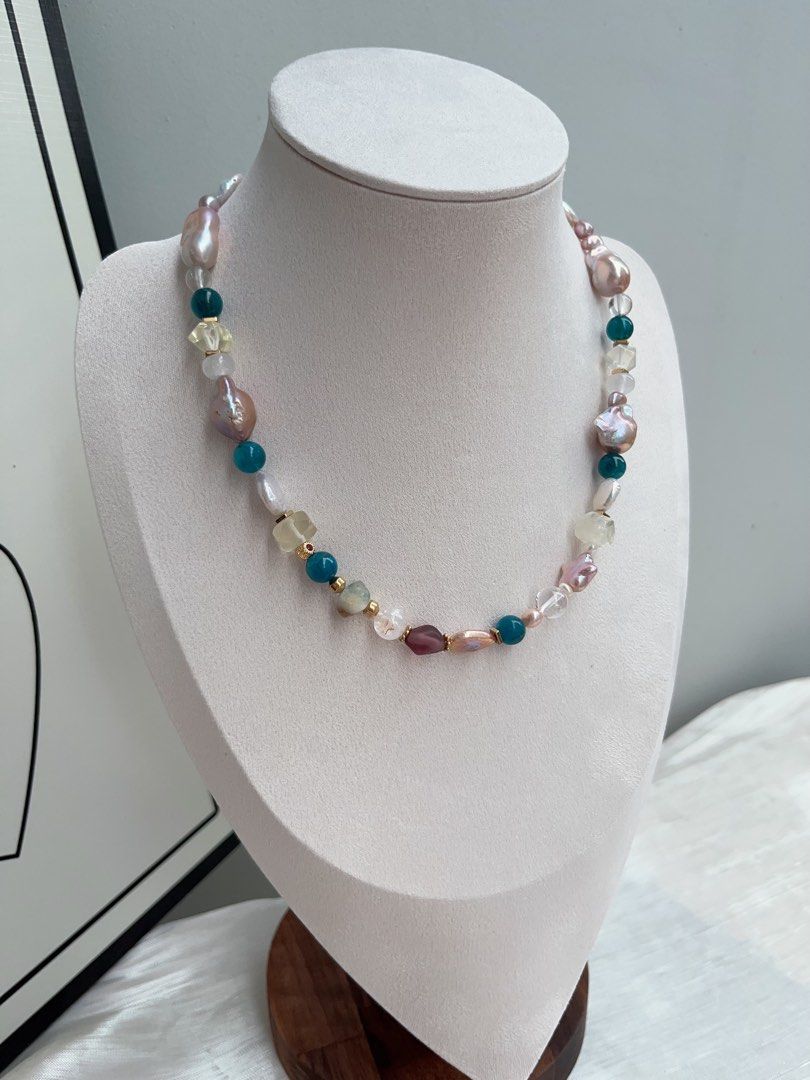 #PN923 Freshwater Pearl Necklace | Blue Apatite | Citrine Faceted | Star Baroque | Fishtail Baroque | Irregular Shapes| Natural Flaws| Colourful Summer