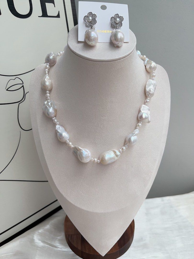 #PN924 Freshwater Pearl Necklace & Earrings Set | Milky Way| Lustrous | 42cm| Gentle, Vintage, Classic | Sweetie & Salty| Gift 🎁 Choice
