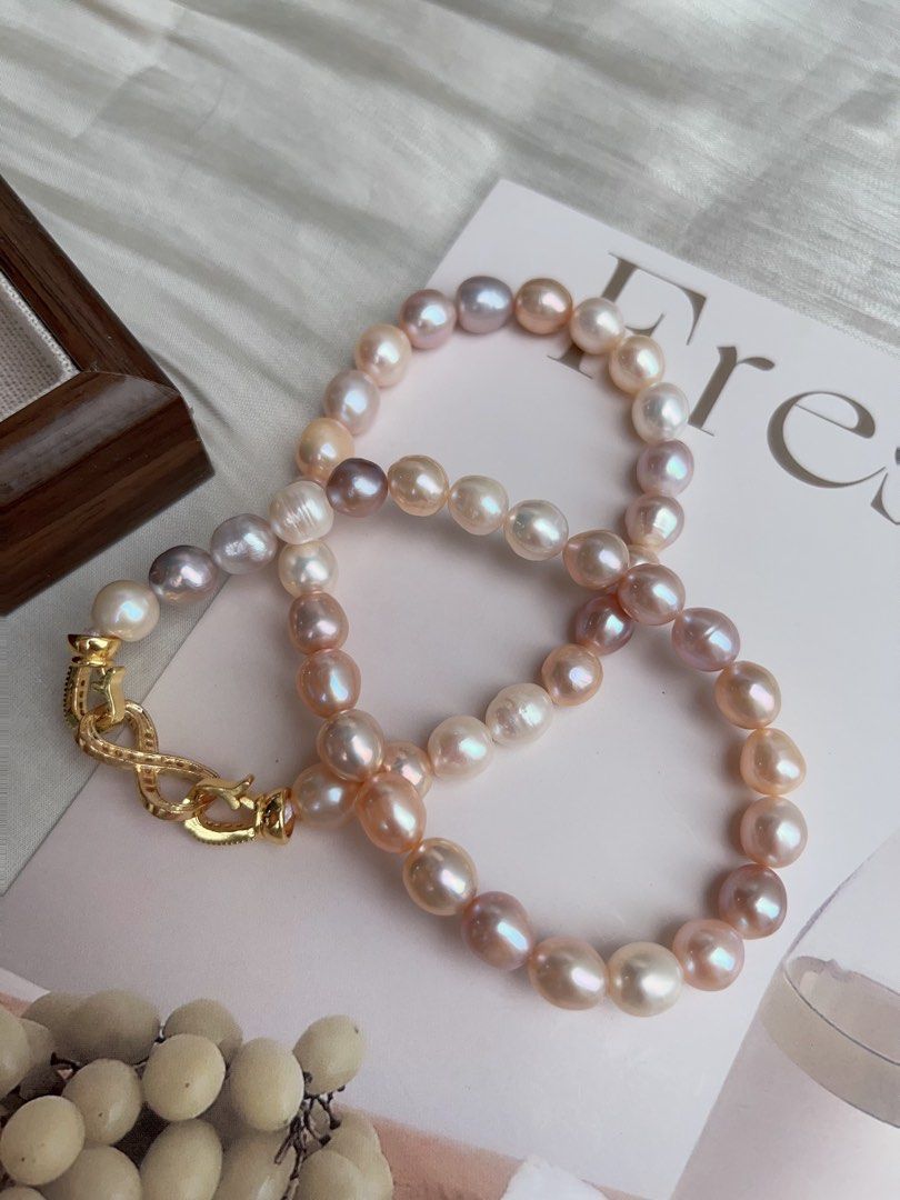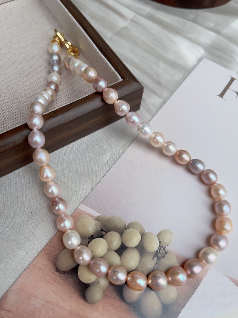 Freshwater pearls have natural flaws like dots, wrinkles, growth hole/lines, etc. Every pearl is unique and special!Read more