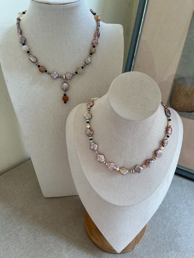 Freshwater pearls have natural flaws like dots, wrinkles, growth hole/lines, etc. Every pearl is unique and special!