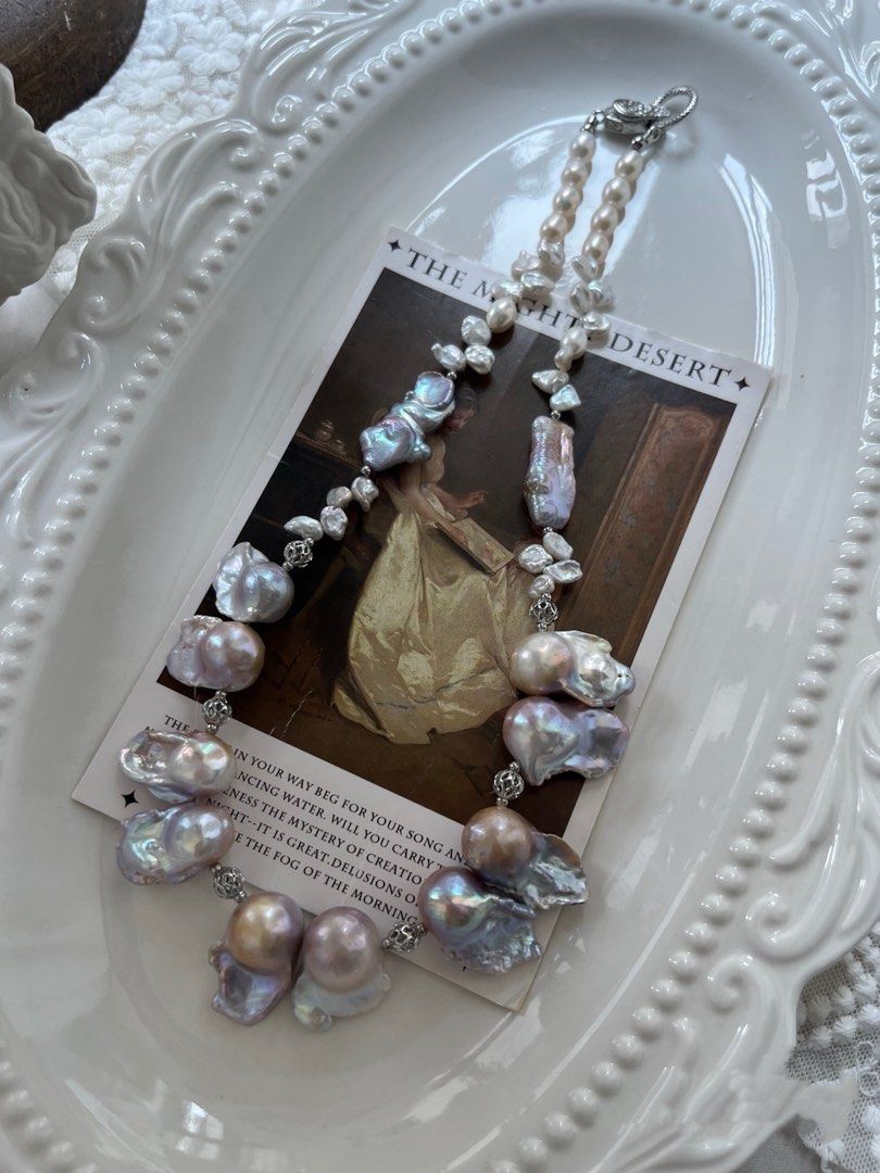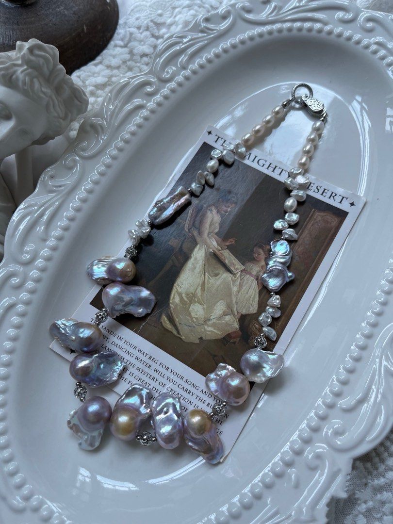 #PN794 Freshwater Pearl Necklace | Blue Purple-ish Shade Big Fishtail Baroque | Silver “Stone” Pearl | Big Blue Lute| Petals| Rare Colour| Chic Starts Here