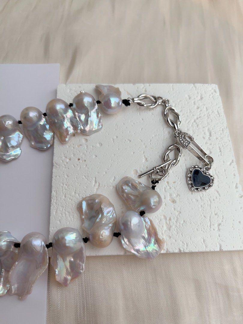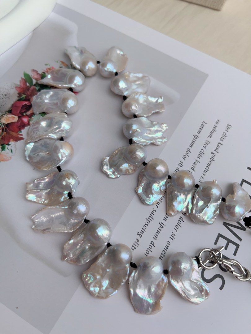 #PN1019 Freshwater Pearl Necklace | French Style | Strong Personality | Lustrous Fishtail Baroque Big| 43cm| Black Agate Pendant | Once in A Lifetime | Natural Flaws