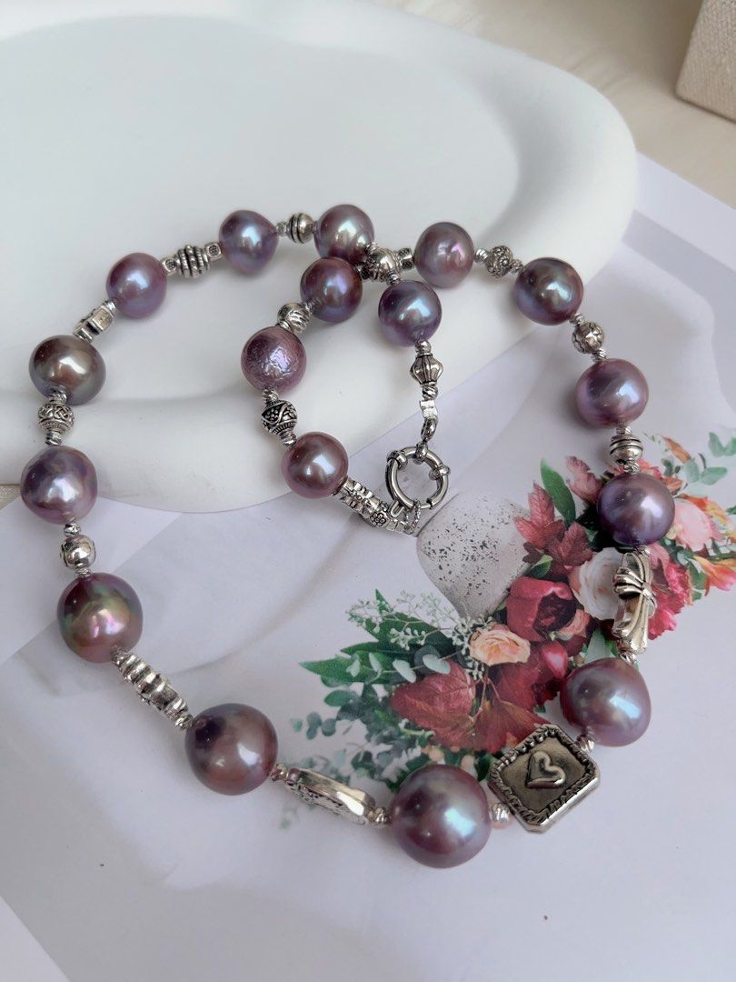 #PN1020 Freshwater Pearl Necklace | Big Blueberry Purple Baroque Pearl | Cross| Dark Purple Metallic Lustre | Sweet & Cool| 43cm| Lustrous | Rare| Cannot Resist