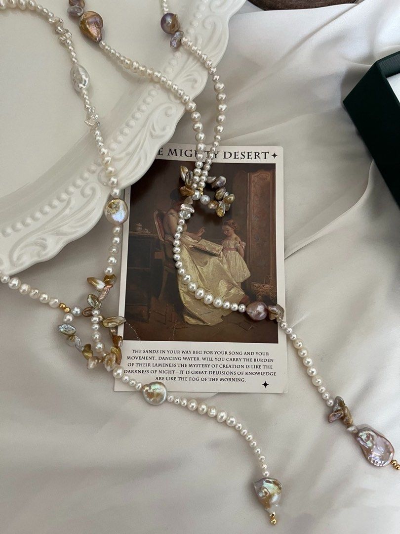 #PN809 Freshwater Pearl Necklace | Golden Petals| Flexible Length | Flower 🌷 Design| Sweater Necklace | Polish Every Look Instantly