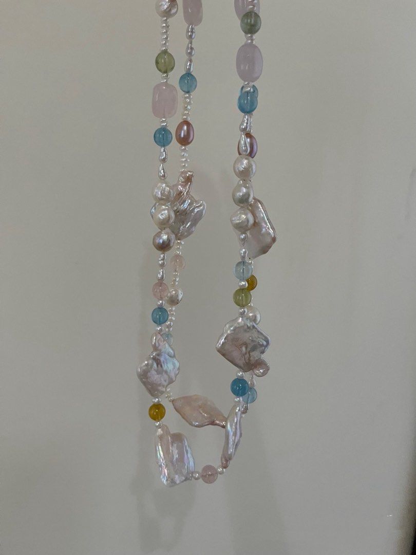 #PN823 Summer Macaron | Freshwater Pearl Necklace | Morganite | Irregular Big Square Baroque | Wrinkled Baroque | Lustrous | Don’t Miss This Gem