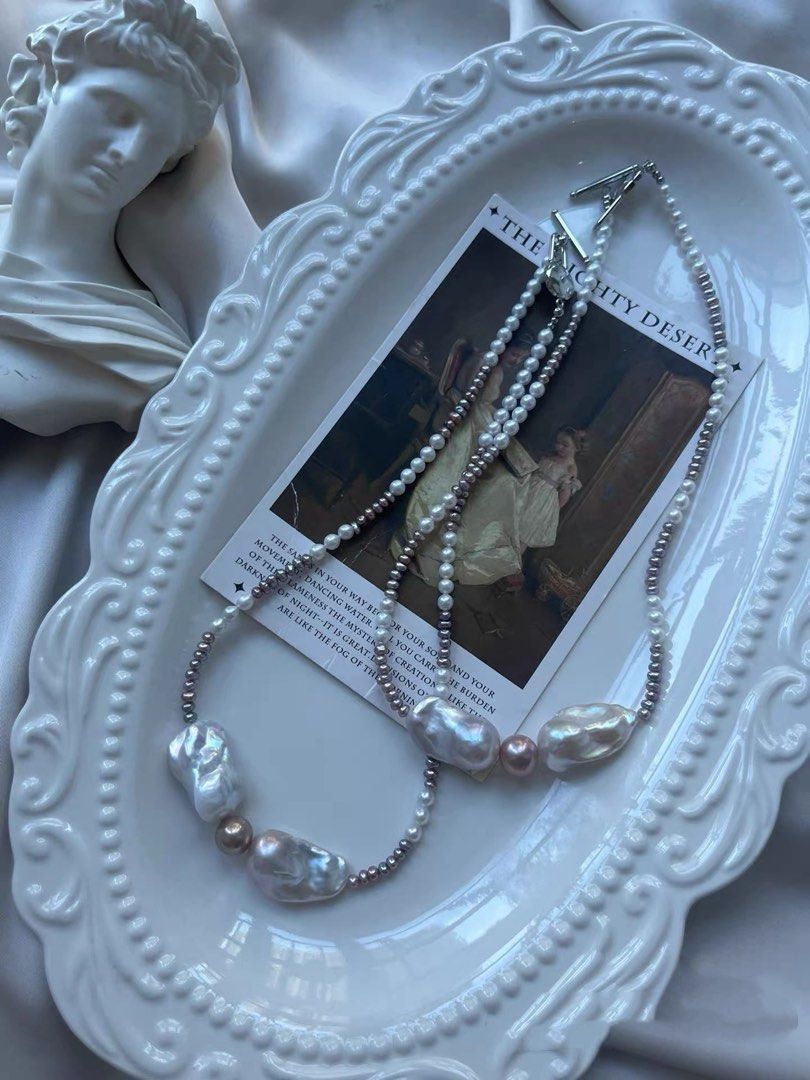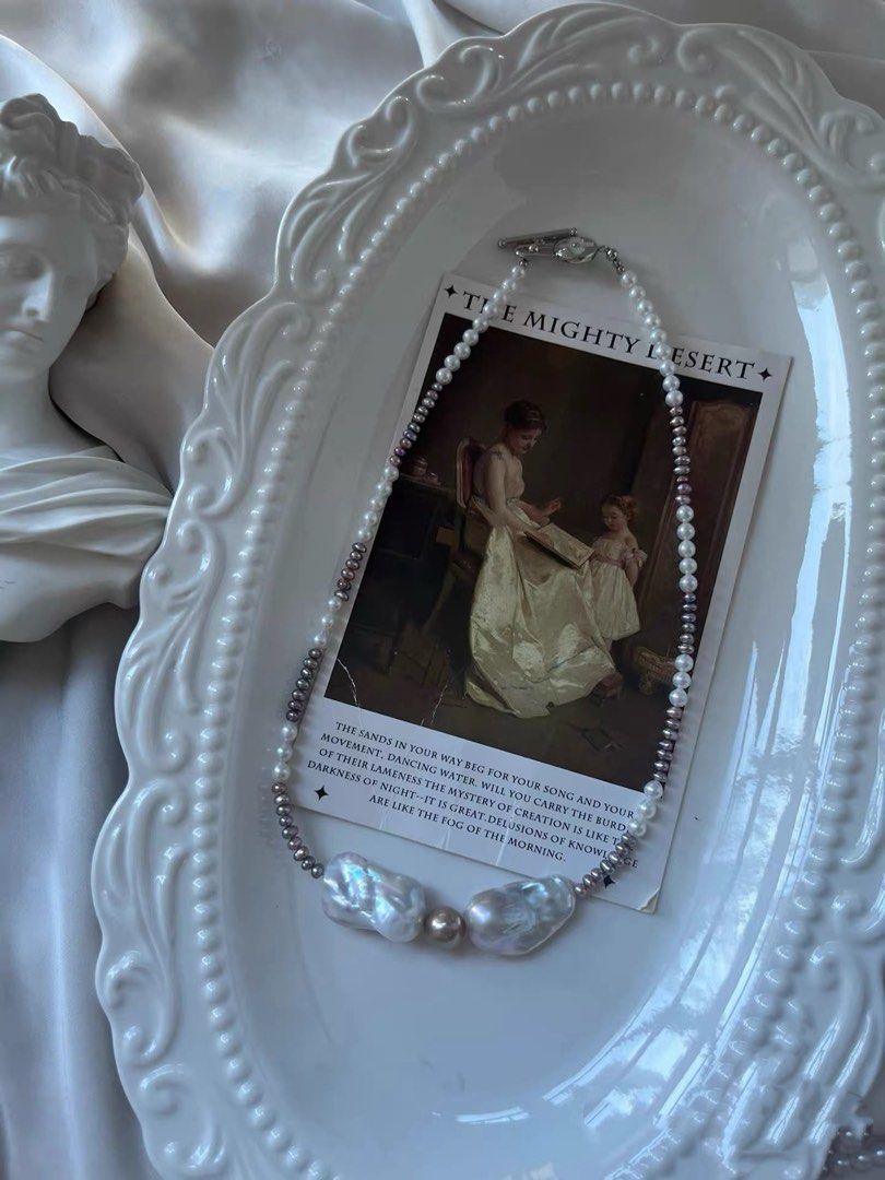 #PN826 [Floral Series] Freshwater Pearl Necklace | Fishtail Baroque | Silver Petals| Metallic Baby Pearl | Lustrous Edison Pearl | Bow Tie| Timeless with A Twist