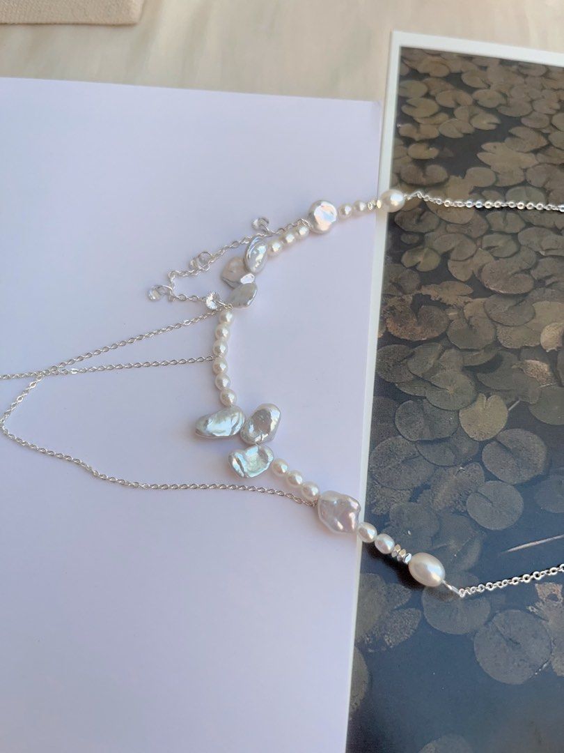#PN1051 Freshwater Pearl Necklace | Natural Silver Baroque Petals| Silver Stone Baroque | Standard Blue-silver Lustre| 45+5cm| Feel A Different Vibe| Christmas Gift 💝