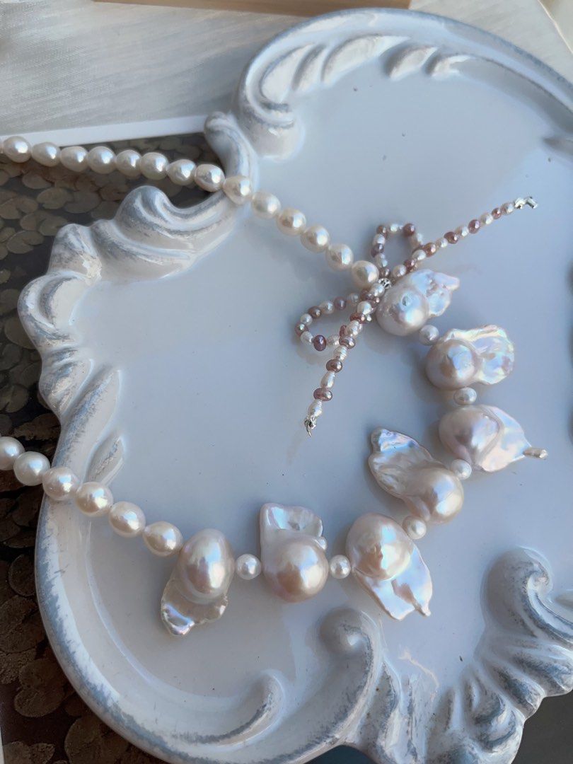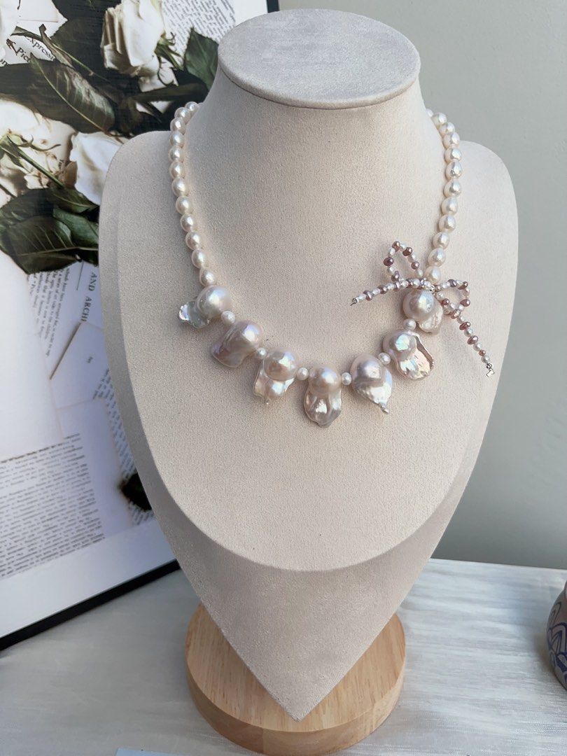 #PN838 Freshwater Pearl Necklace | Pearl Bow Tie Design| Lustrous Fishtail Baroque|Natural Flaws | Genuine Curiosity