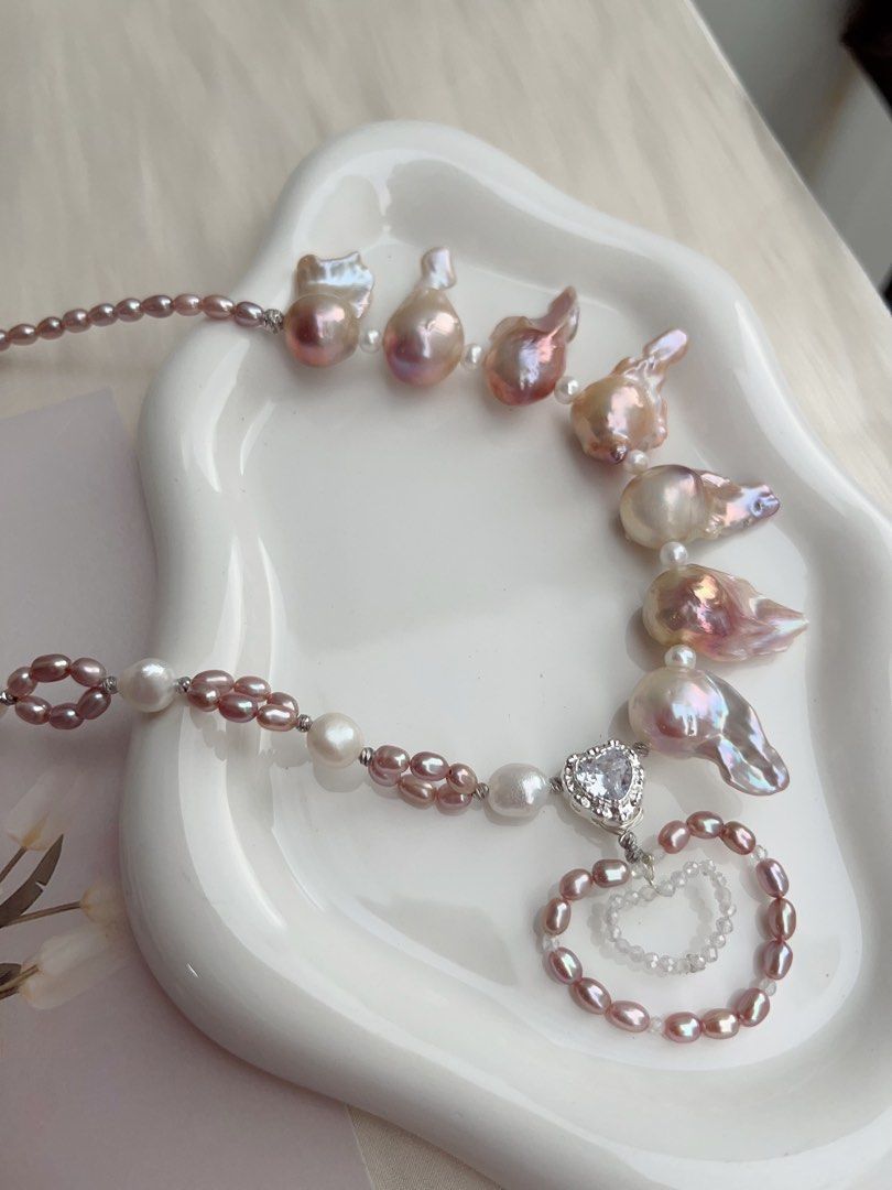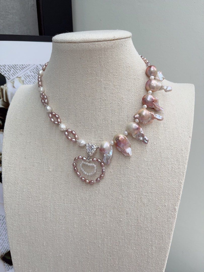 #PN1059 Freshwater Pearl Necklace | Small Heart in Big Heart ♥️ | Pink-purple Fishtail Baroque | Braided Design | Strong Personality | 38+5cm| Lustrous | Natural Flaws | Christmas Gift 💝 | Flowing Wind