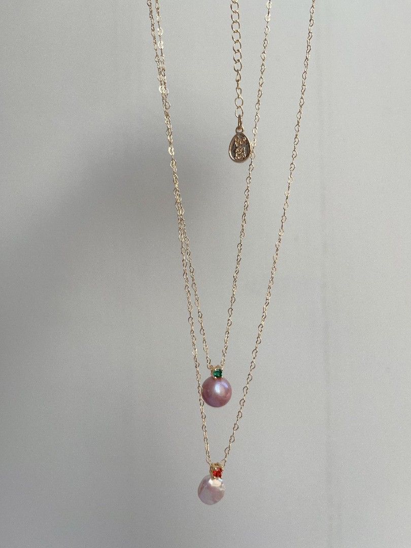 #PN1098 Freshwater Pearl Necklace| Zircon| 9mm Lustrous Coin Pearl| 10.5mm Purple Baroque Pearl| Heart ❣️ Shaped Chain| Pendant Necklace| Birthday Gift 🎁| Delicate & Dainty