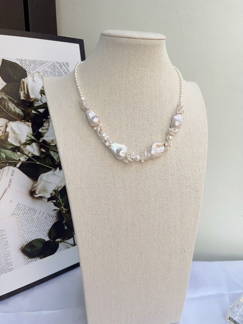 #PN1100 [Floral Series] Freshwater Pearl Necklace| 45cm| Light Pink Lustre White Fishtail Baroque Pearl| Superb Lustre| Petals Design| For Special Occasion| To Match Your Aura