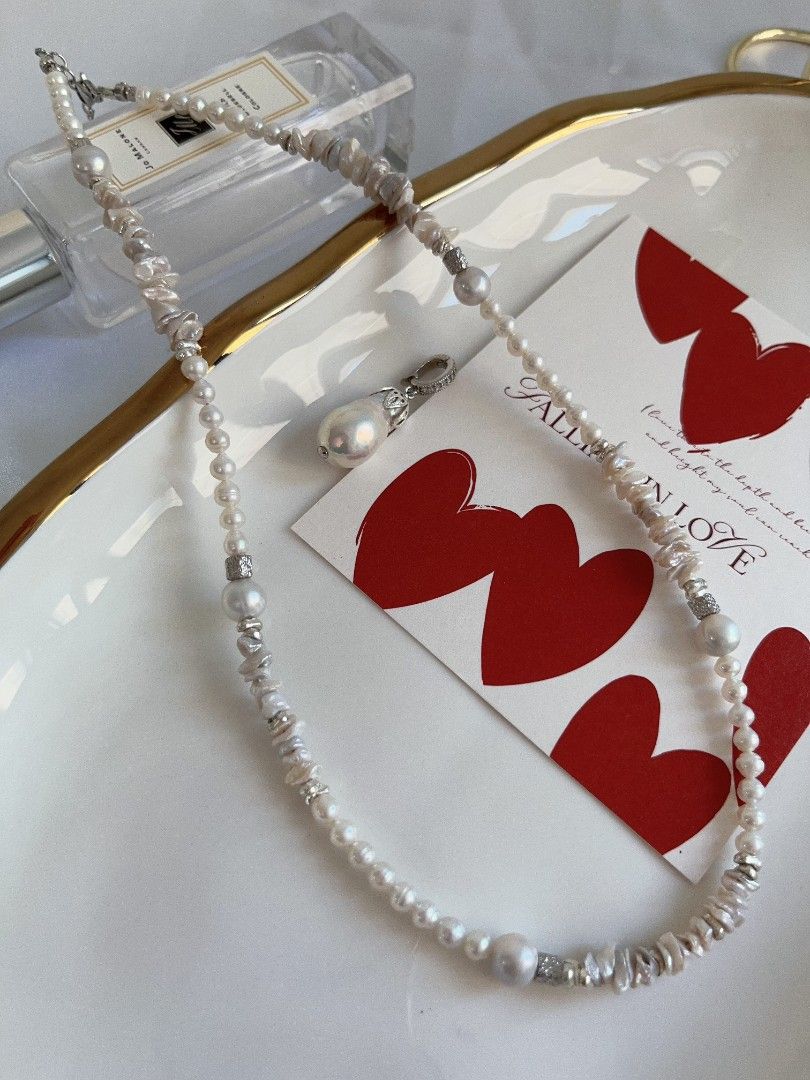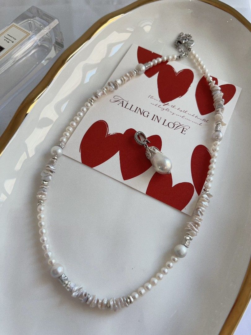 #PN1118 Freshwater Pearl Necklace| 43+5cm| 5-6mm Layered Petals| Silver Lustre| Detachable Rock Sugar Pendant 21mm| Popular Design