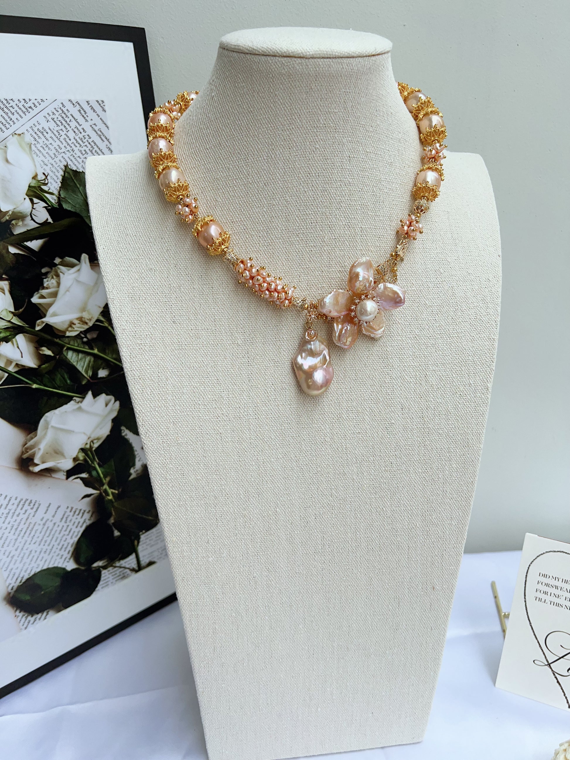 #PN1150 [Floral Series] Freshwater Pearl Necklace| 44.5cm| 43mm Big Petal Flower 🌺| 30mm Fishtail Baroque Pendant | 11-13mm Purple Baroque Pearl| Hardcore Industrial Style