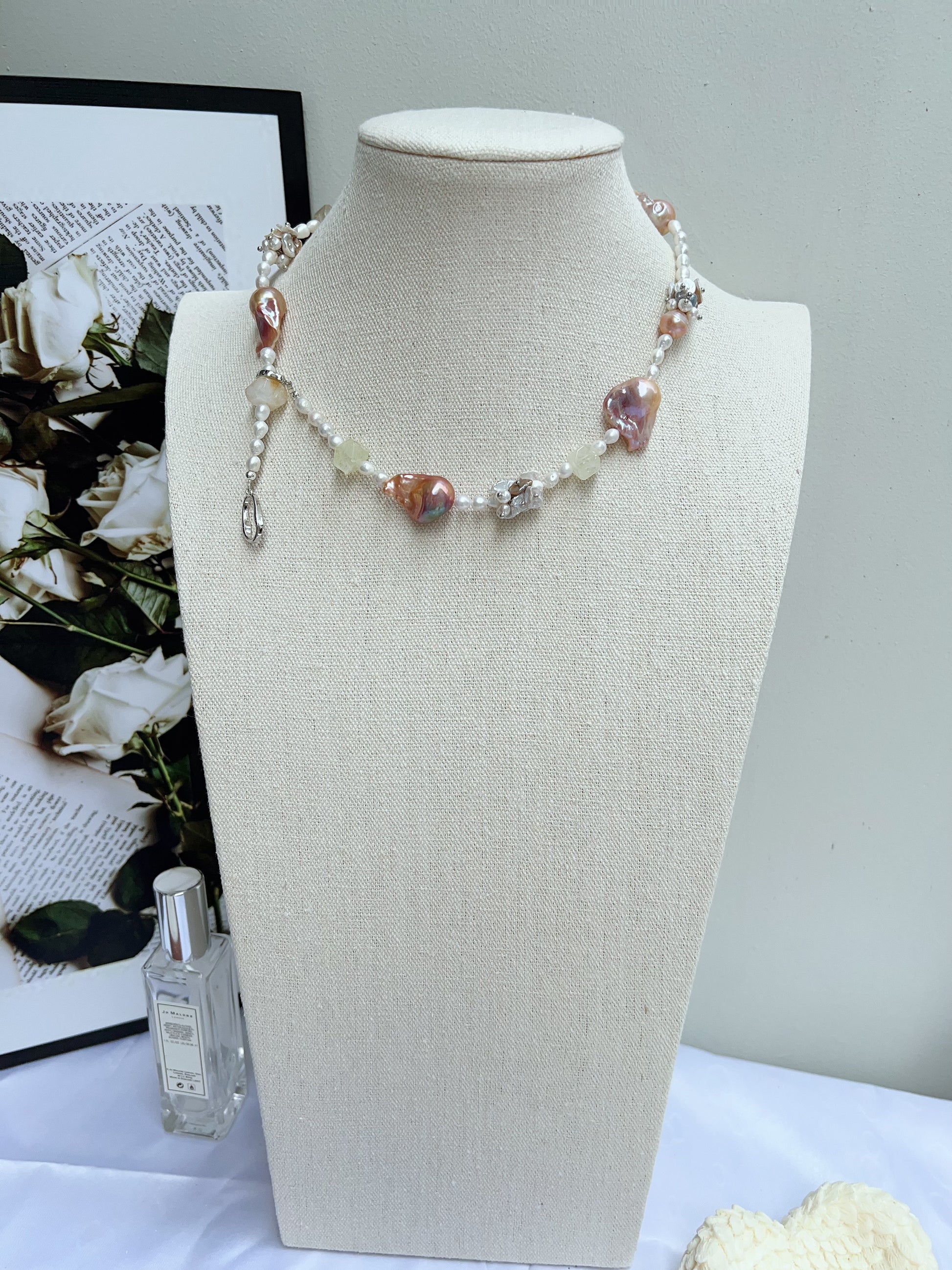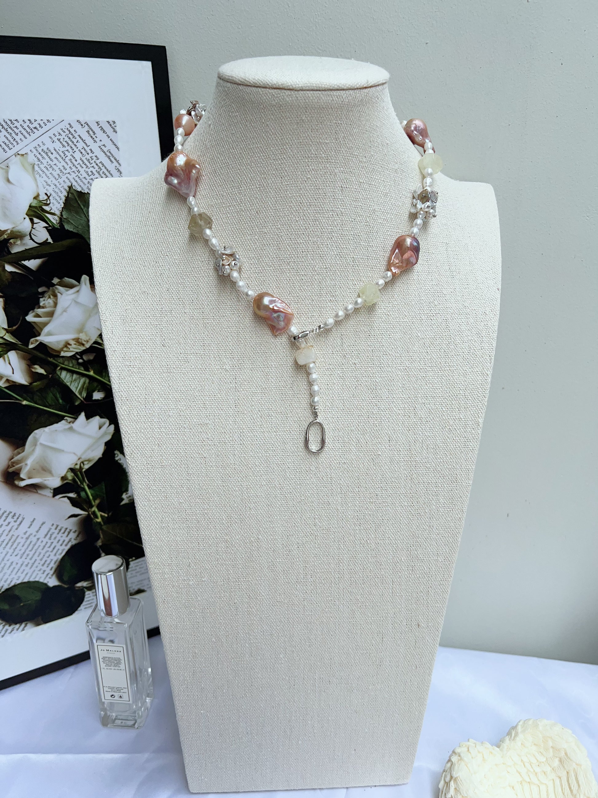 #PN1215 [Floral Series] freshwater pearl necklace citrine freeform wide fishtail baroque natural flaws
