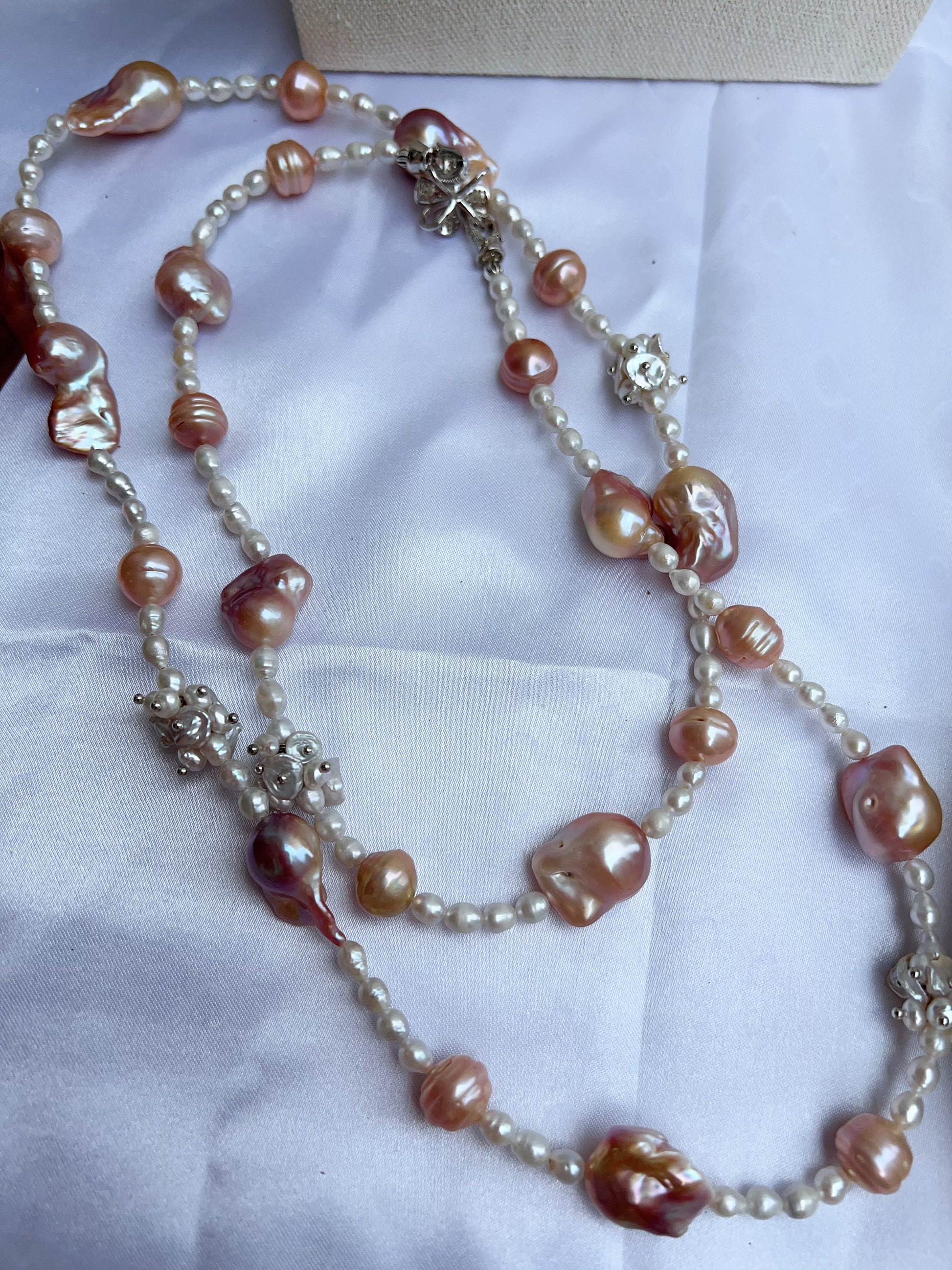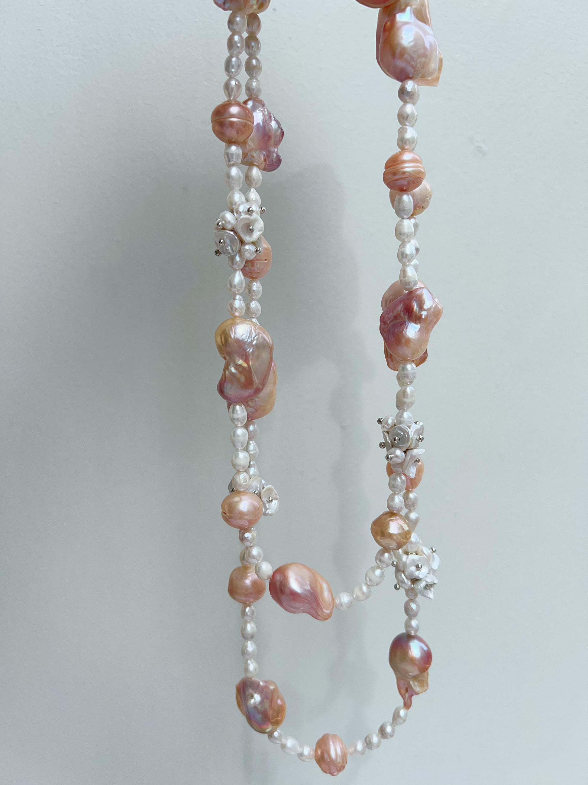 #PN1216 [Floral Series] freshwater pearl necklace multiple wearing ufo shaped baroque small fishtail baroque lustrous