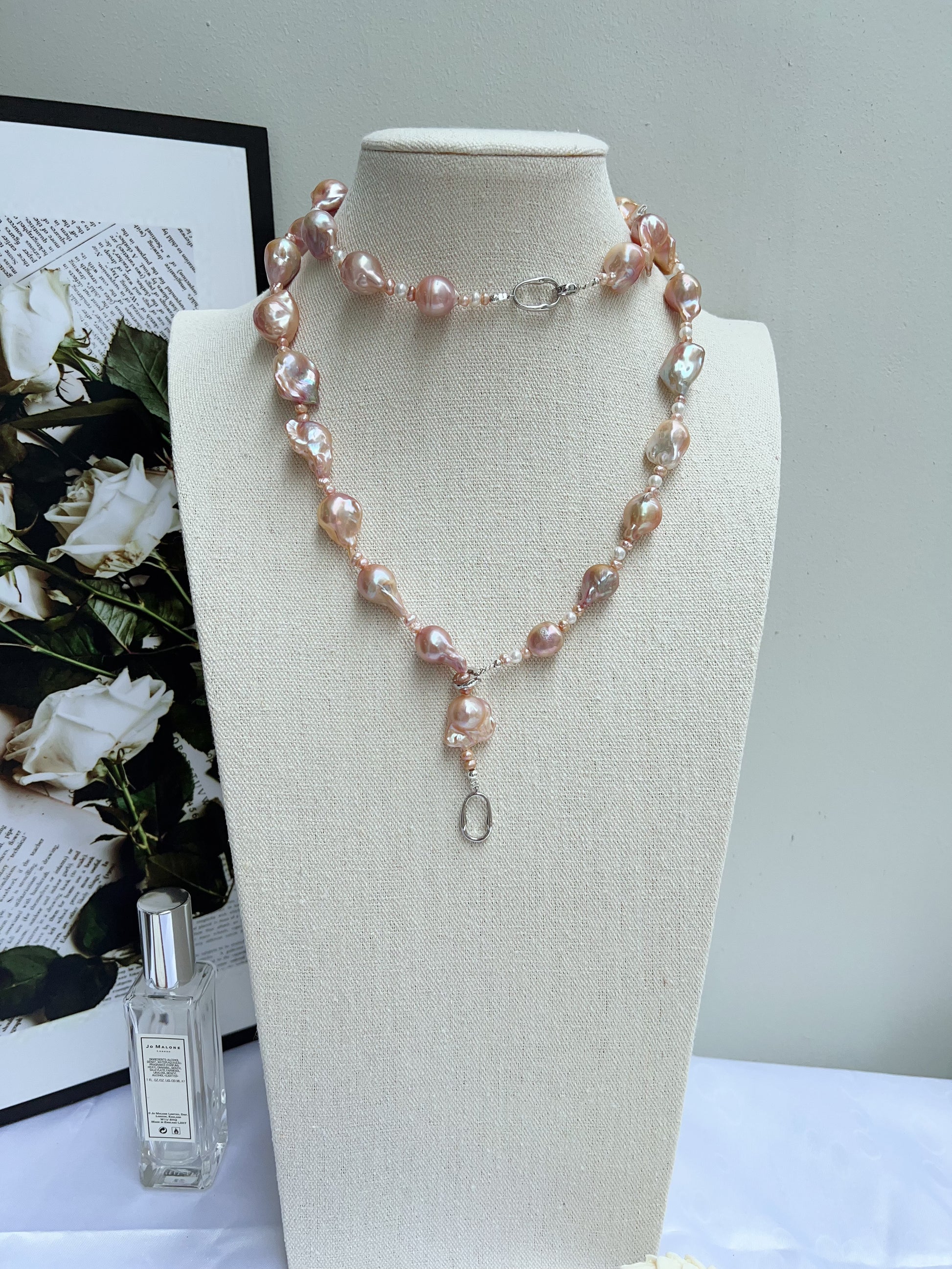 #PN1217 freshwater pearl necklace set medium fishtail baroque purple-golden lustre stary sky