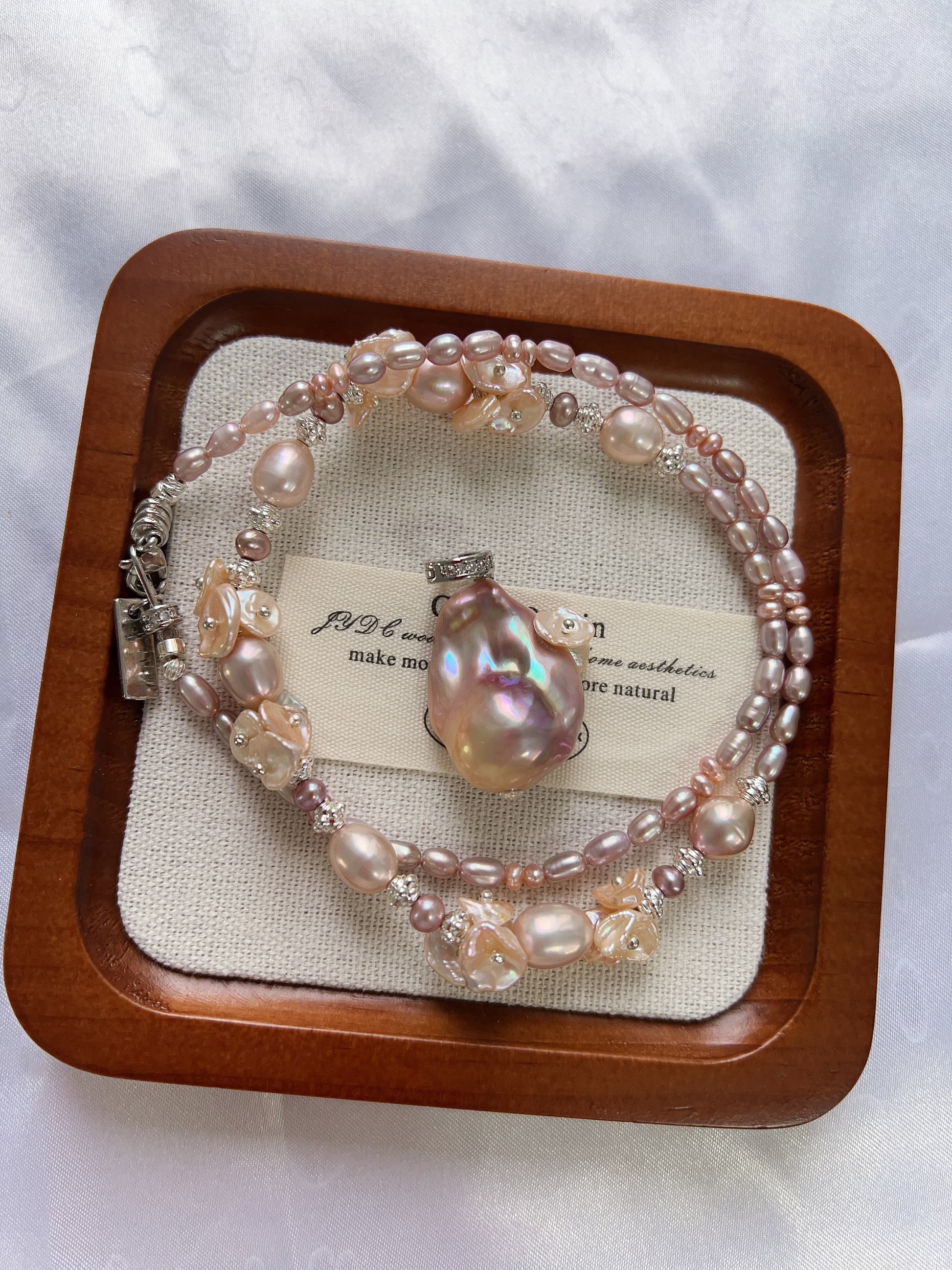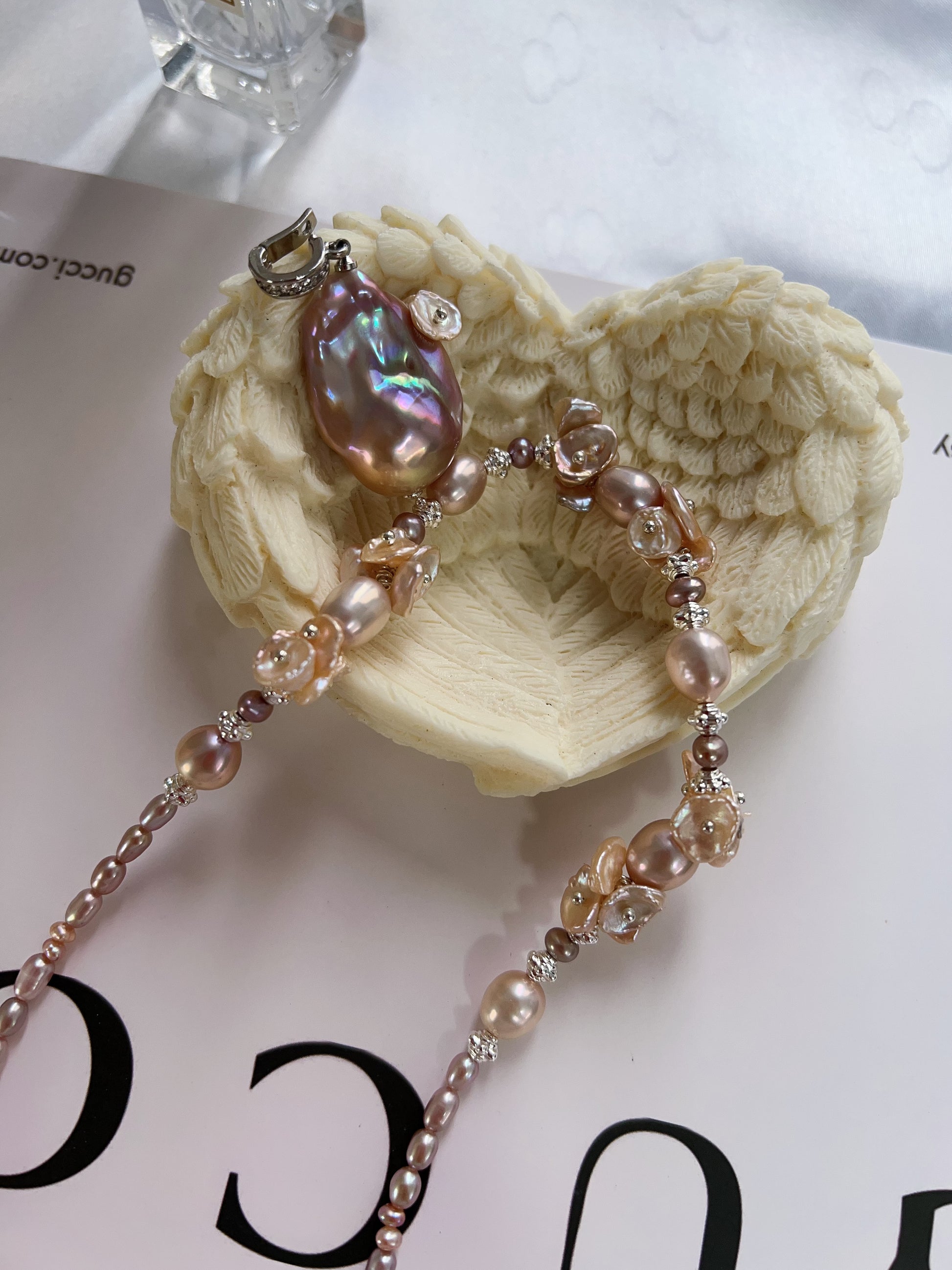#PN1222 [Floral Series] freshwater pearl necklace all the way to sun lustrous fishtail baroque detachable pendant 47cm "pearl wearing flower" design