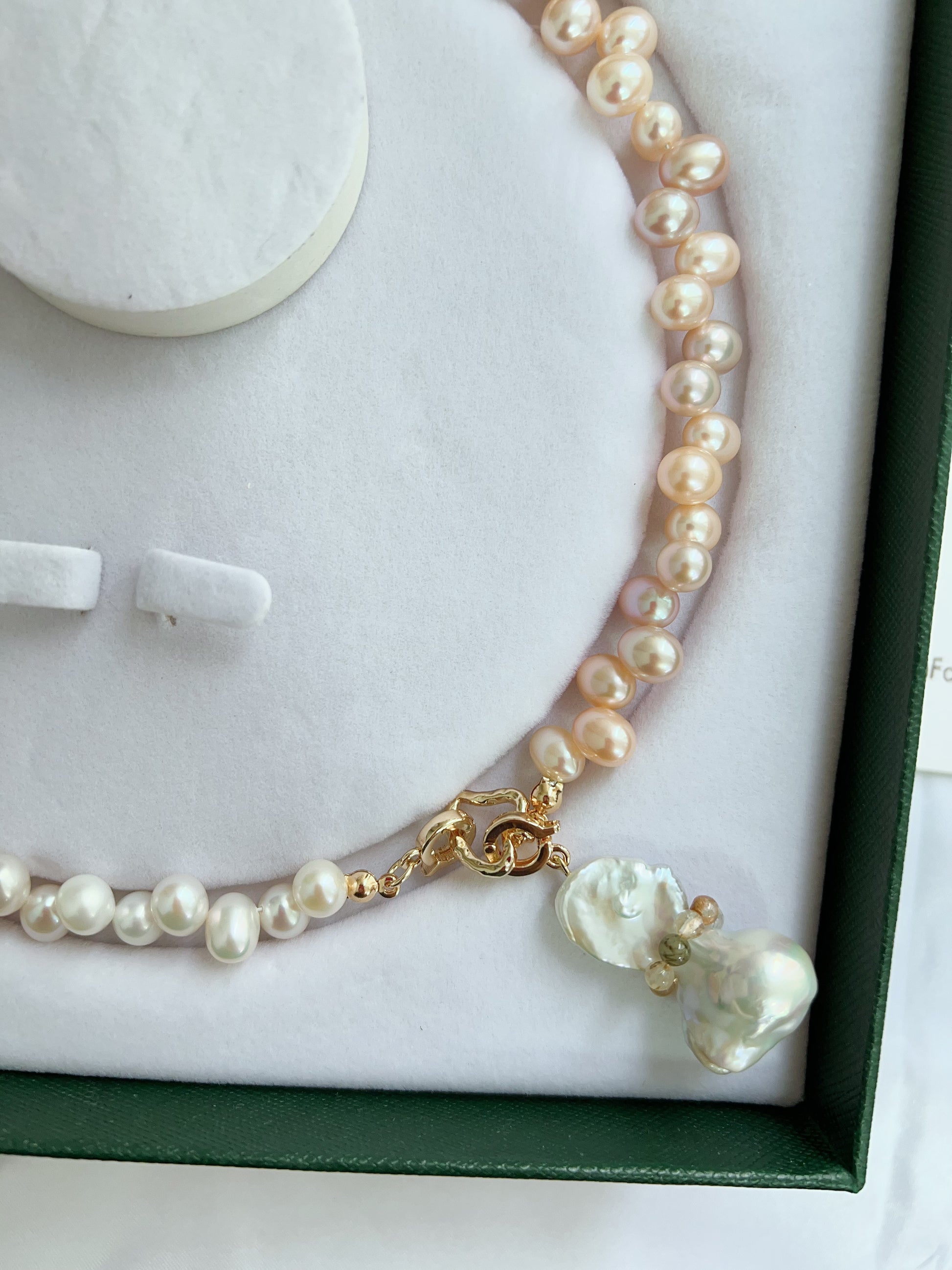 Freshwater pearls have natural flaws like dots, wrinkles, growth hole/lines, etc. Every pearl is unique and special!
