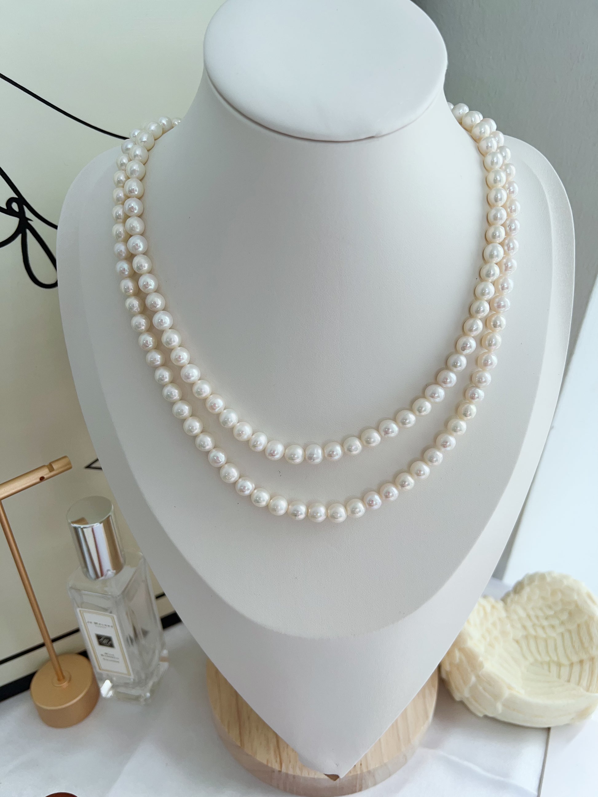 Freshwater pearls have natural flaws like dots, wrinkles, growth hole/lines, etc. Every pearl is unique and special!