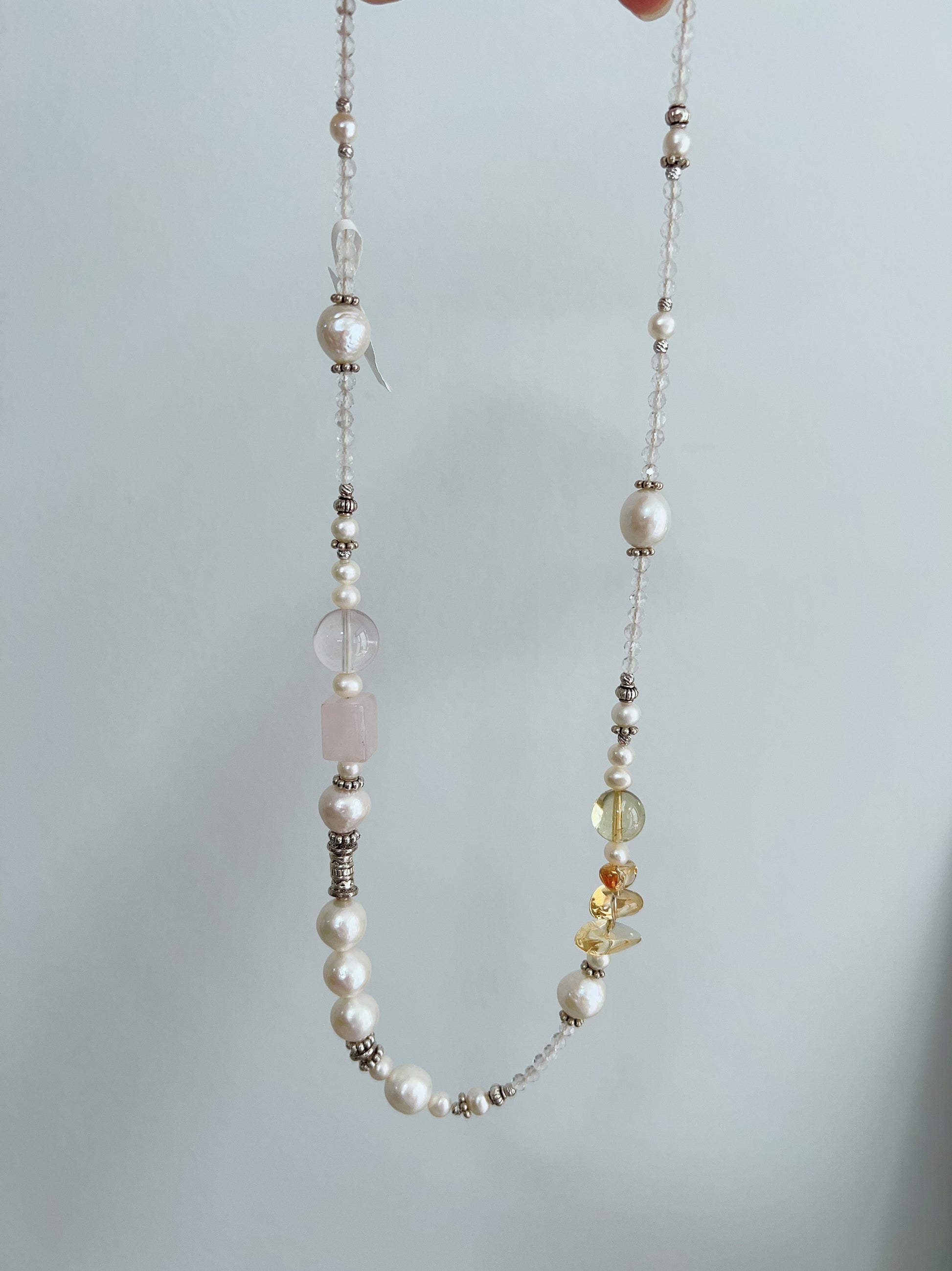 #PN1256 Freshwater pearl necklace 54cm multi wearing rose quartz citrine long necklace