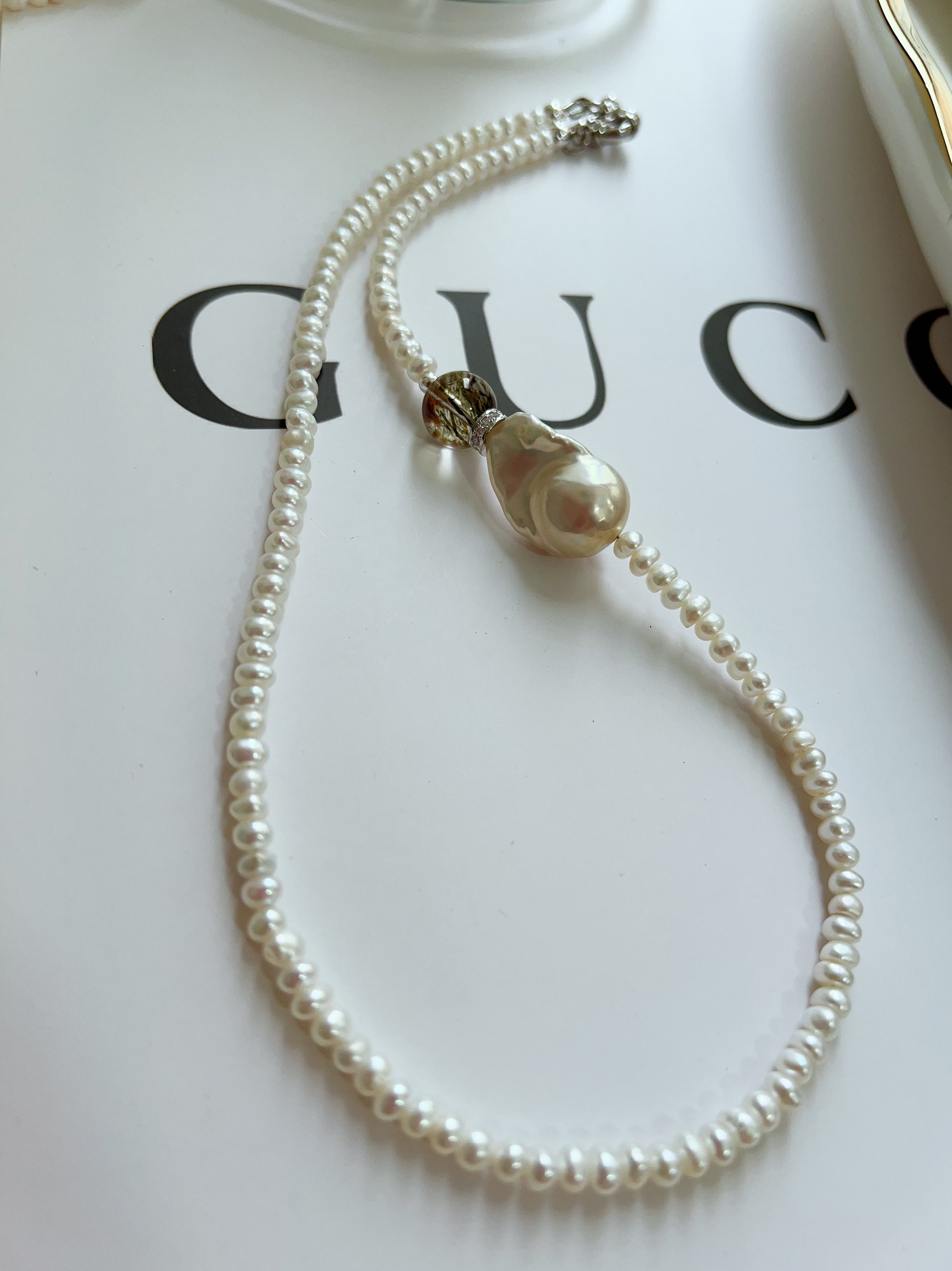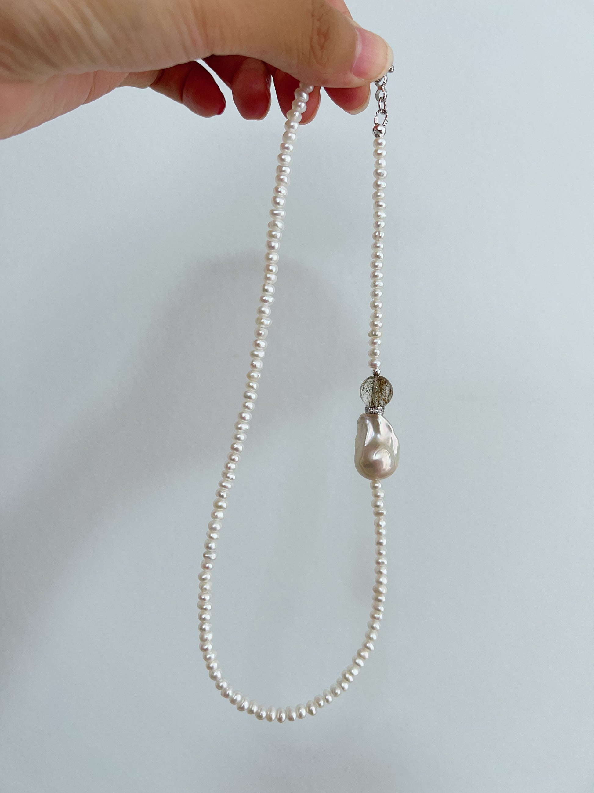 #PN1274 Freshwater pearl necklace high clarity green rutile cold lustre fishtail baroque pearl baby pearl excellent lustre