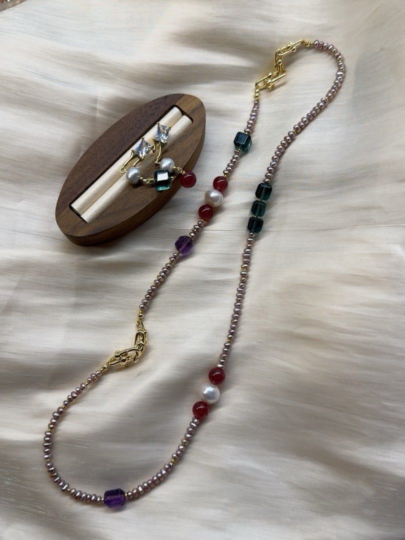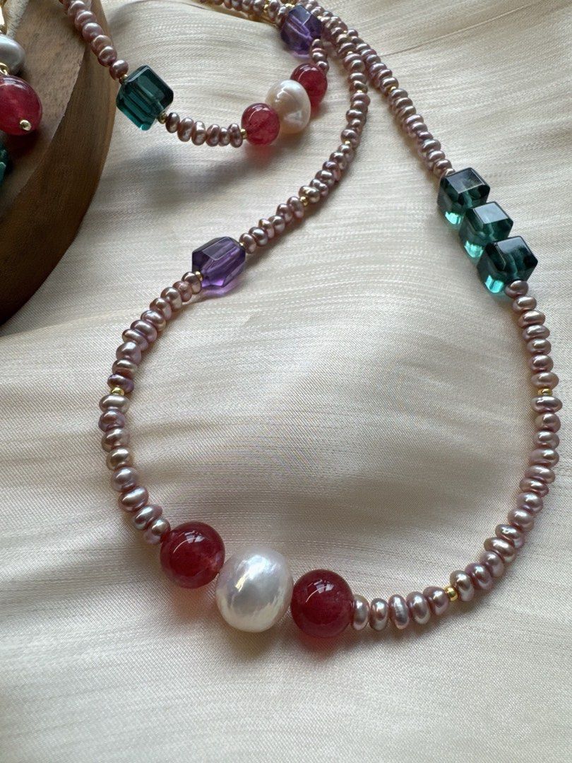 #PN15 Green Grapes| Freshwater Pearl Necklace & Bracelet & Earrings Set | High Quality Green Fluorite Cube|Amethyst Cube| Strawberry Quartz |Baby Baroque Keshi Pearl