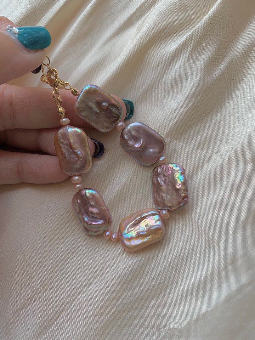 #PN198 Golden Flash|Genuine Freshwater Pearl Necklace & Bracelet Set |Baroque Pearl |Square Shaped |Golden-Purple|Excellent Lustre