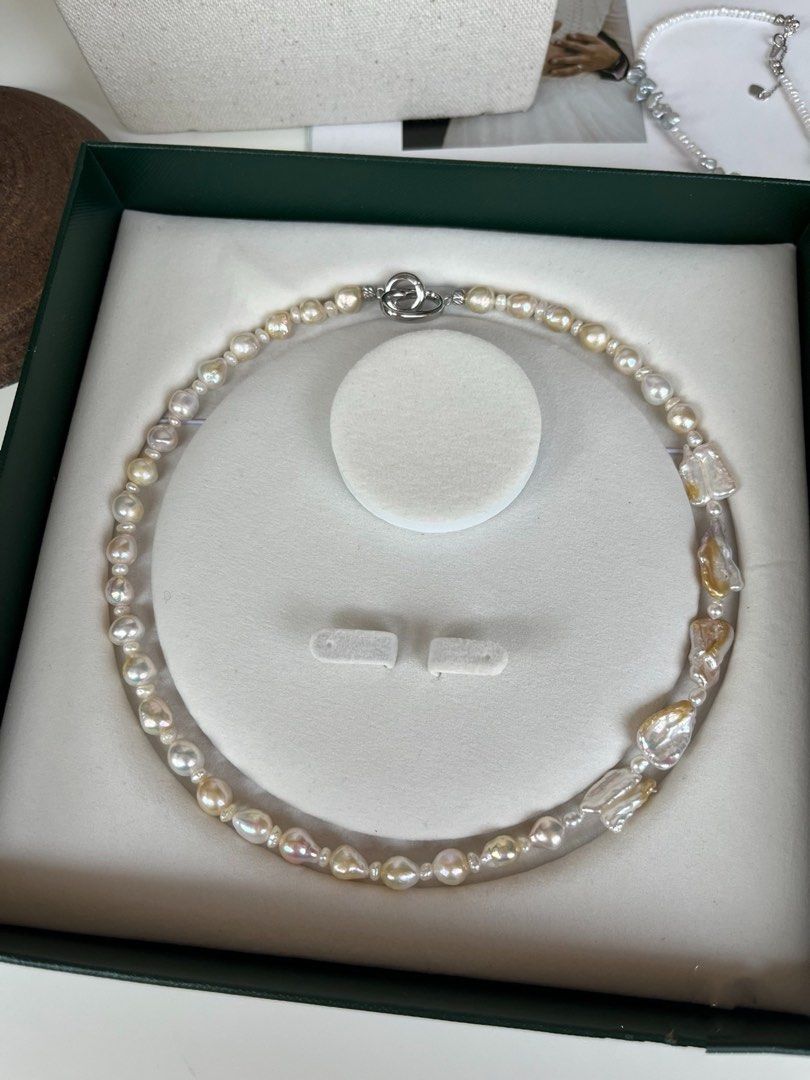 Freshwater pearls have natural flaws like dots, wrinkles, growth hole/lines, etc. Every pearl is unique and special!