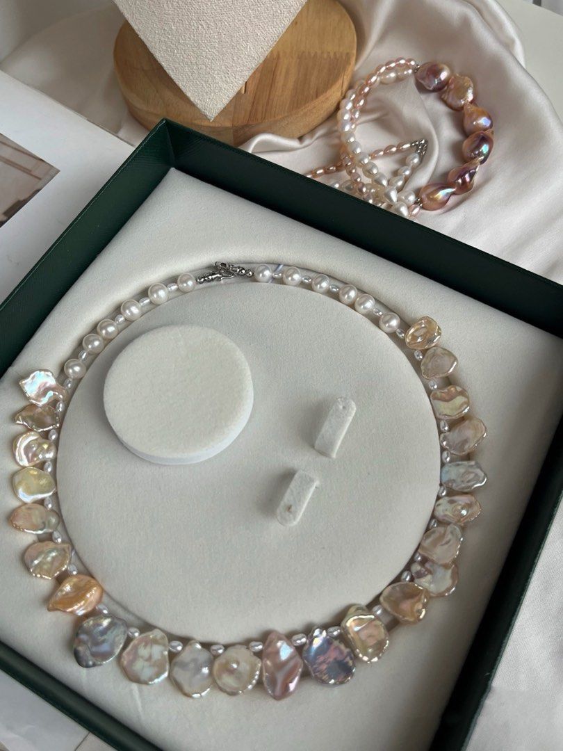 #PN364 Morandi Petals|Freshwater Pearl Necklace |Morandi Colours|Supreme Lustre |Blue, Champagne Gold, Pink Petal Pearl|Top Class Petals