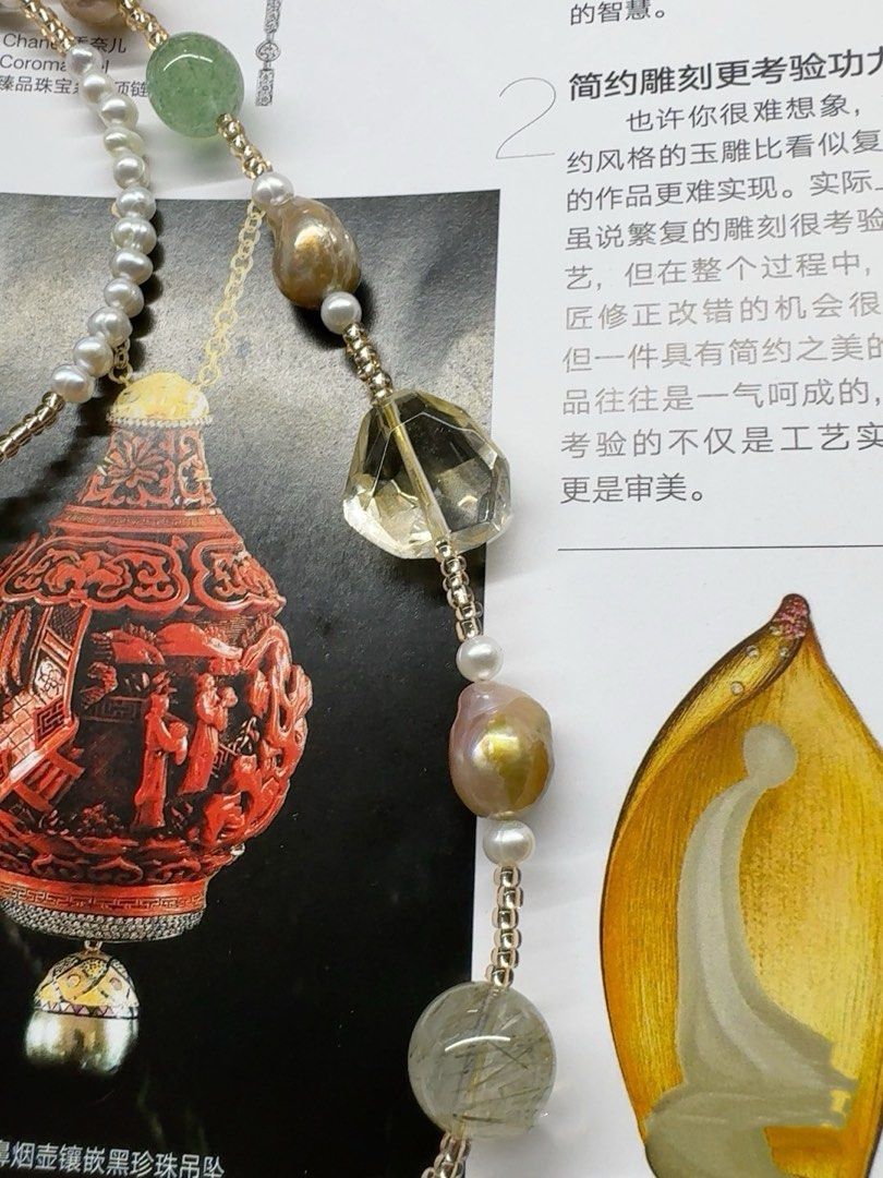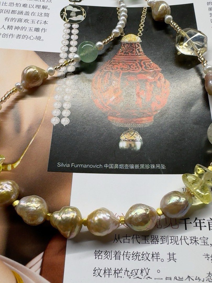 #PN419 Golden Times|Freshwater Pearl Necklace |Green Strawberry Quartz |Baby Pearl |Wrinkled Golden Baroque Pearl |Natural Flaws