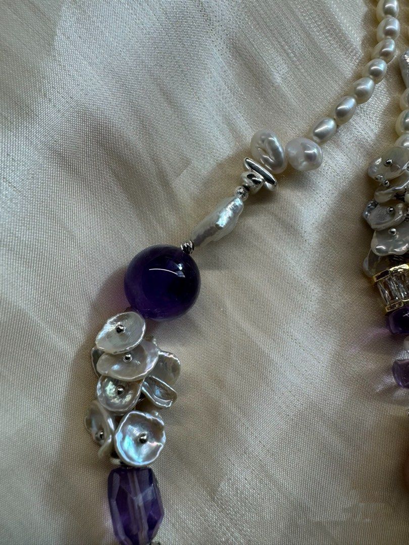 #PN488 [Floral Series] Contemporary Chic| Freshwater Pearl Necklace |Purple Quartz |Mixed Shapes| Magnetic Clasp
