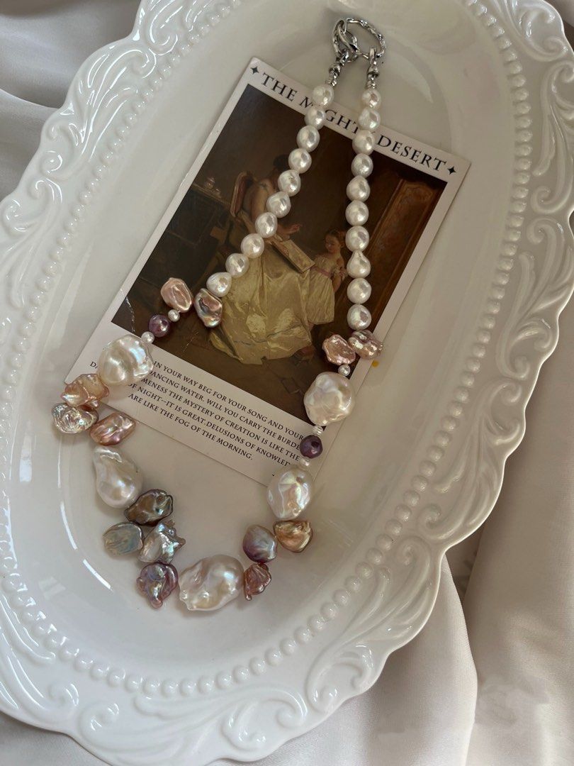 #PN640 Freshwater Pearl Necklace | Big Fishtail Baroque Pearl | Metallic Colour Big Petal Pearl | Round Wrinkle Baroque | Excellent Lustre