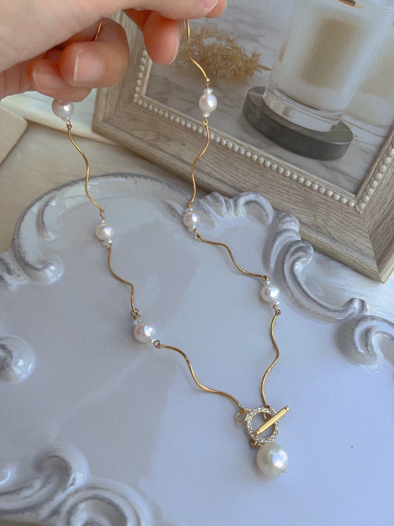 #PN655 Freshwater Pearl Necklace & Earrings Set| Stainless Steel | Titanium | Tarnish Free| Zircon Clasp| Pendant | “S” Shape