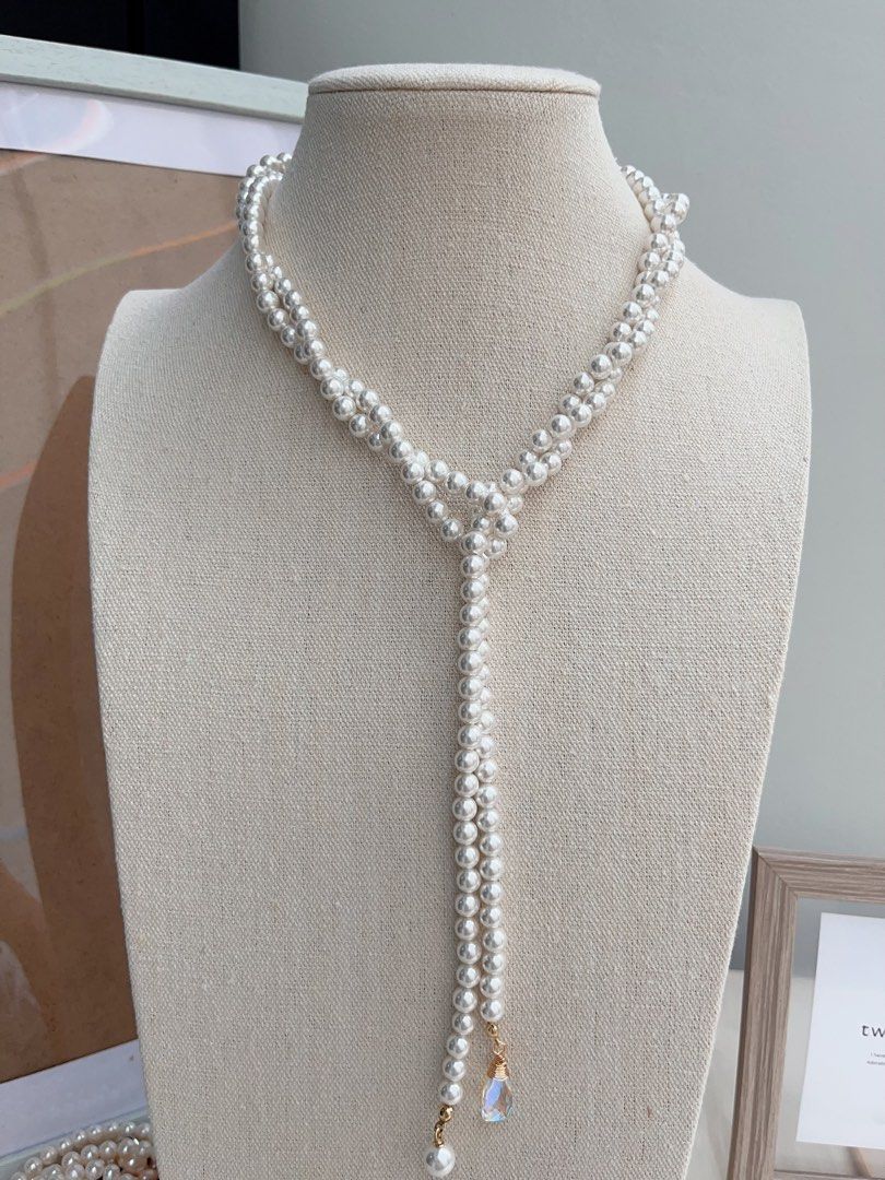 Note: The necklace uses Swarovski pearls which are artificial pearls, not freshwater pearls. #PN660 Is the freshwater pearls version!