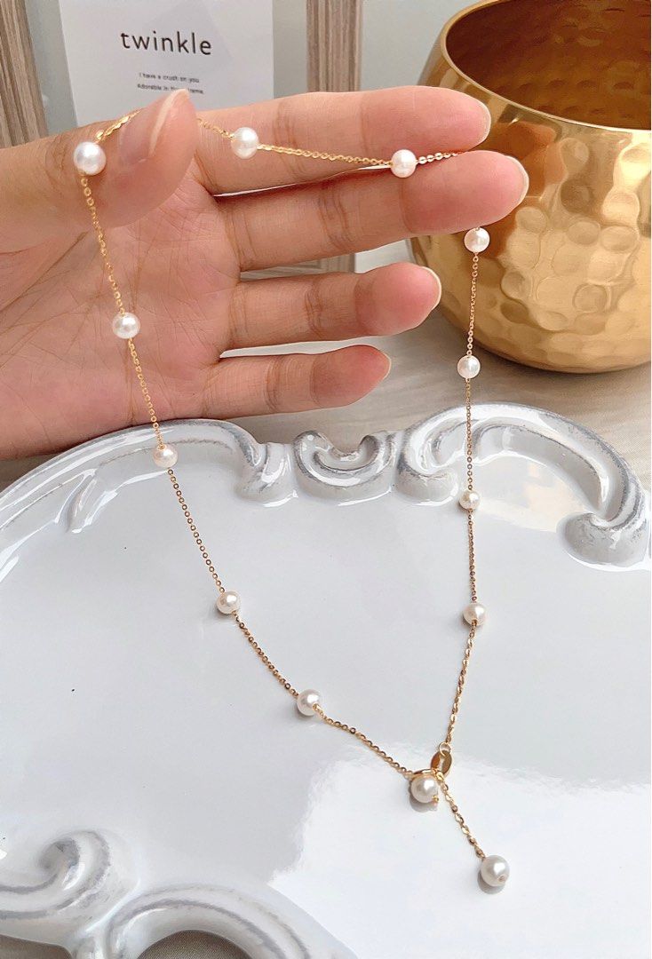 #PN672 Freshwater Pearl Necklace| Star Sky Design| Adjustable Length | Classic Eternity